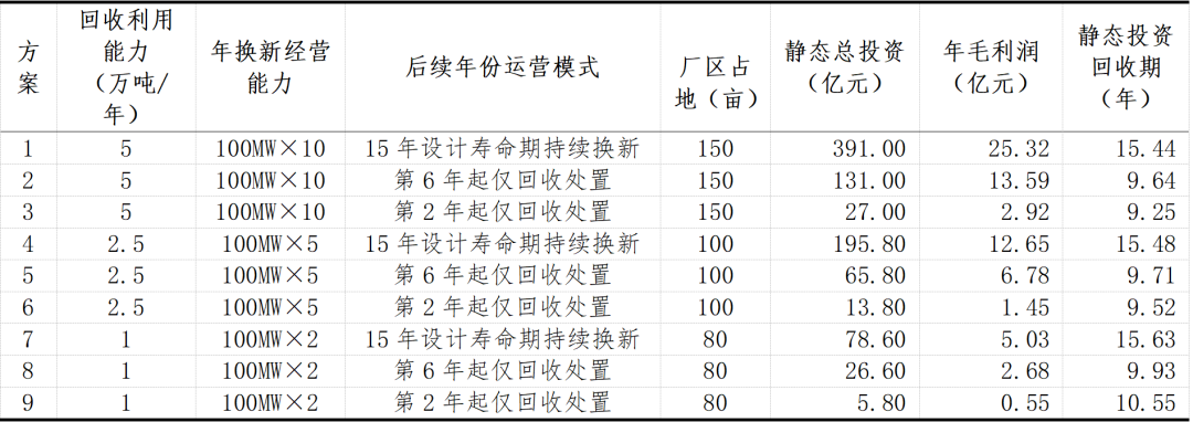 基于XOD理念的退役风光设备 “回收利用+换新经营+利益共享”(RRS) 商业模式研究 张建红 夏荣立 孟群 摘要:我国风电、光伏设备即将迎来退役潮,但回收利用尚未形成成熟的商业模式,面临处置成本高、相关制度规范体系不健全等困境,制约着退役风电、光伏设备回收利用产业的规模化、专业化、市场化发展。探寻并建立有效的退役风电光伏设备回收利用商业模式,可提高退役风电光伏设备回收利用率。结合第三方回收模式、回收利用一体化模式的优劣势,创新性提出基于XOD理念的“回收利用+换新经营+利益共享”模式(Recycling & Repowering Stake-based Model,简称RRS模式),以及几种实施方式,并通过算例论证了利用RRS模式更新改造风光电站的可行性;发现存在项目静态投资回收期随换新持续时间减少而先减少后增加的现象,而且该模式并非普适性方案,也是有其适用条件的。最后,提出了要进行多方案比选、因地制宜选取合适的方案,加快处置能力布局、构建退役风光设备循环利用链条,防范潜在风险、开展多种经营等建议。 关键词:退役风光设备;回收利用;商业模式;XOD理念;RRS模式;技术经济分析 当前,我国风电、光伏等可再生能源已进入规模化开发阶段,正引领电力系统向清洁化、低碳化方向加速转型。国家能源局统计数据显示,截至2025年9月,我国风电累计装机容量约5.82亿千瓦、太阳能发电装机容量约11.26亿千瓦,大大超过火电装机容量(15.03亿千瓦),成为保障电力供应的主要力量。2025年9月24日,我国宣布了2035年国家自主贡献目标,明确非化石能源消费比重将提升至30%以上;风电和太阳能发电总装机容量力争达到36亿千瓦。随着可再生能源总装机量快速增长以及设备更新需求的不断增加,预计自2030年起退役风电光伏量将呈爆发式增长态势[1],由此产生的固废量非常巨大。面对退役风电光伏设备回收利用的难题,探索可行的商业模式,打通风电光伏设备循环利用产业的最后一环,对于行业的可持续发展十分重要。 一、现状 (一)退役风光设备规模巨大 退役风电设备产生的固体废弃物处理已成为能源领域的重要课题。根据国家能源局2024年印发的《能源重点领域大规模设备更新实施方案》,结合《风电场改造升级和退役管理办法》的明确要求,我国正系统推进风电行业设备更新工作,政策鼓励对并网运行满15年或单机容量低于1.5MW的风电场实施改造升级。风电机组的设计寿命一般为20~25年,我国从2000年左右开始大规模推进风电产业发展。目前风电场“以大带小”的升级改造导致市场峰值提前到来。业内预计,2025年,国内风电产业将迎来第一波大规模风电机组“退役潮”。根据中国可再生能源学会分析数据,到2025年风电退役机组将达到1800多台,装机容量为1.25GW(超过20万吨);到2030年将达到10GW/年(210万吨),到2035年累计将达到100GW(约2000万吨),2045年累计将达到150GW(约2500万吨~3000万吨)。 退役光伏组件情况大致类似。据中国光伏行业协会预计,2025年,我国将开始产生大批量退役光伏组件,到2025年全国累计退役光伏组件将达到9GW左右,当年度退役组件超2.7GW,约合21万~27万吨废弃量。2030年后,光伏组件废弃量将迎来高峰期,达到18GW左右,约140万吨的废弃量;到2040年,光伏组件累计废弃量将达到253GW,约2000万吨[2]。 (二)退役风光设备回收潜力和价值较大 退役风机和光伏设备中有巨大回收潜力和价值。风机部件包括了铜、钢、水泥、碳纤维/玻璃纤维等材料,以1.5MW风机为例,每千瓦用钢量为0.11吨、用铜量2.9~3.5千克。据此估算,退役风机可回收价值2030年累计可达240亿元,到2040年累计则高达2600亿元。 光伏组件中玻璃、铝材、半导体材料比重可达92%,另外还含约1%的银等贵金属。中国再生资源产业技术创新战略联盟测算,若能全量回收,到2030年,我国可从退役光伏组件中得到145万吨碳钢、110万吨玻璃、54万吨塑料、26万吨铝、17万吨铜、5万吨硅和550吨银[3]。目前,废旧光伏板市场回收价格约2000~4000元/吨,据此估算,到2030年,废弃光伏组件累计可回收价值达28亿~56亿元,到2040年累计高达400亿~800亿元。 图1 典型光伏组件结构示意 退役风电光伏设备回收利用问题已引起国家高度重视,相关部委密集出台政策文件推动产业规范化发展。2023年8月,国家发展改革委等部门发布的《关于促进退役风电、光伏设备循环利用的指导意见》首次明确退役设备是“工业固体废弃物”,并不得擅自以填埋、丢弃等方式非法处置退役设备,不得向生活垃圾收集设施中投放。2024年1月,生态环境部印发《固体废物分类与代码目录》,报废光伏组件和报废风机叶片及边角料均被列入可再生类废物(SW17),在国家层面退役风电光伏设备有了明确的定义。2025年9月,国家能源局等部门发布的《关于推进能源装备高质量发展的指导意见》提出“加快建立光伏、风电设备退役废弃产品回收标准规范,构建覆盖绿色设计、规范回收、高值利用、无害处置等环节的回收利用体系”。 面对新能源产业规模化发展与即将到来的风电光伏设备退役高峰的双重挑战,亟待建立我国风电光伏设备退役再利用的有效路径。借鉴其他产业成熟的商业模式,探索适合退役风电光伏设备回收利用的商业模式,对推动新能源产业健康发展、优化能源结构布局、保障重要能源矿产资源安全具有重要战略意义。 二、面临的困境与挑战 (一)处置能力不足且区域失