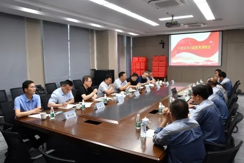 2023年5月,潘小海(左五)带领主题教育调研组与张新福团队座谈