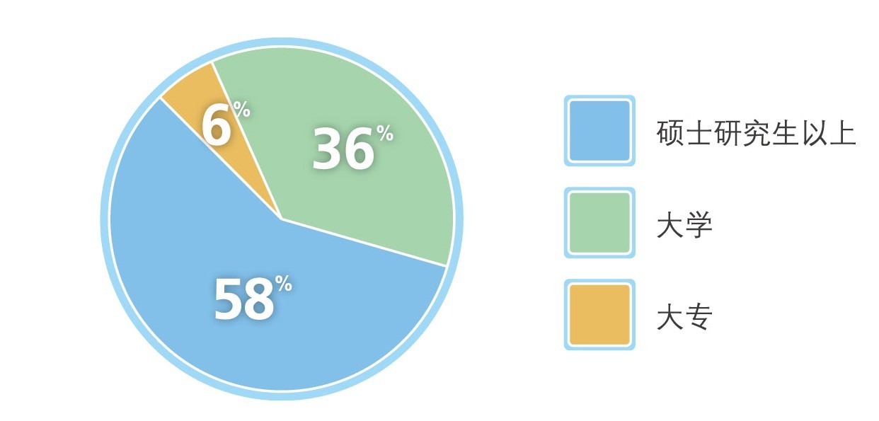 目前,万搏网站员工3000余人,其中专业技术人员占80%以上,专业覆盖工程技术、经济管理等各个行业。硕士学历占58%,大学学历占36%,大专学历占6%。