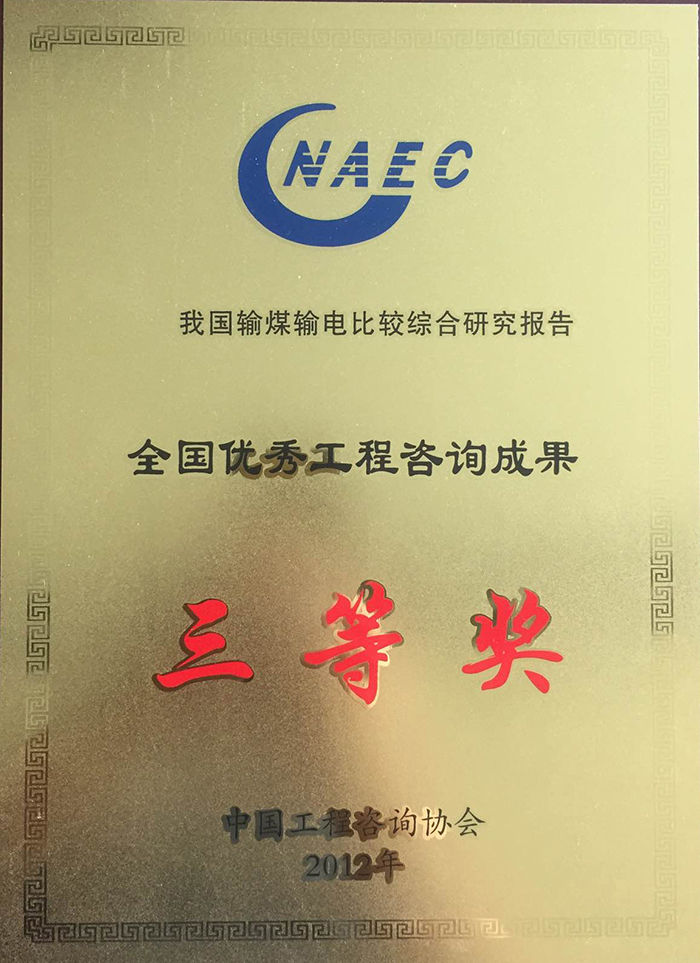 全国优秀工程咨询成果三等奖(2012年)