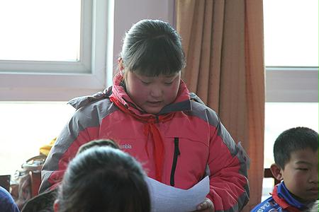 长期患病的受助学生小雪婷向改革局爱心团队表达感激之情