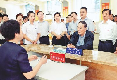 王岐山在哈尔滨市抚顺社区办事大厅调研。 新华社记者摄