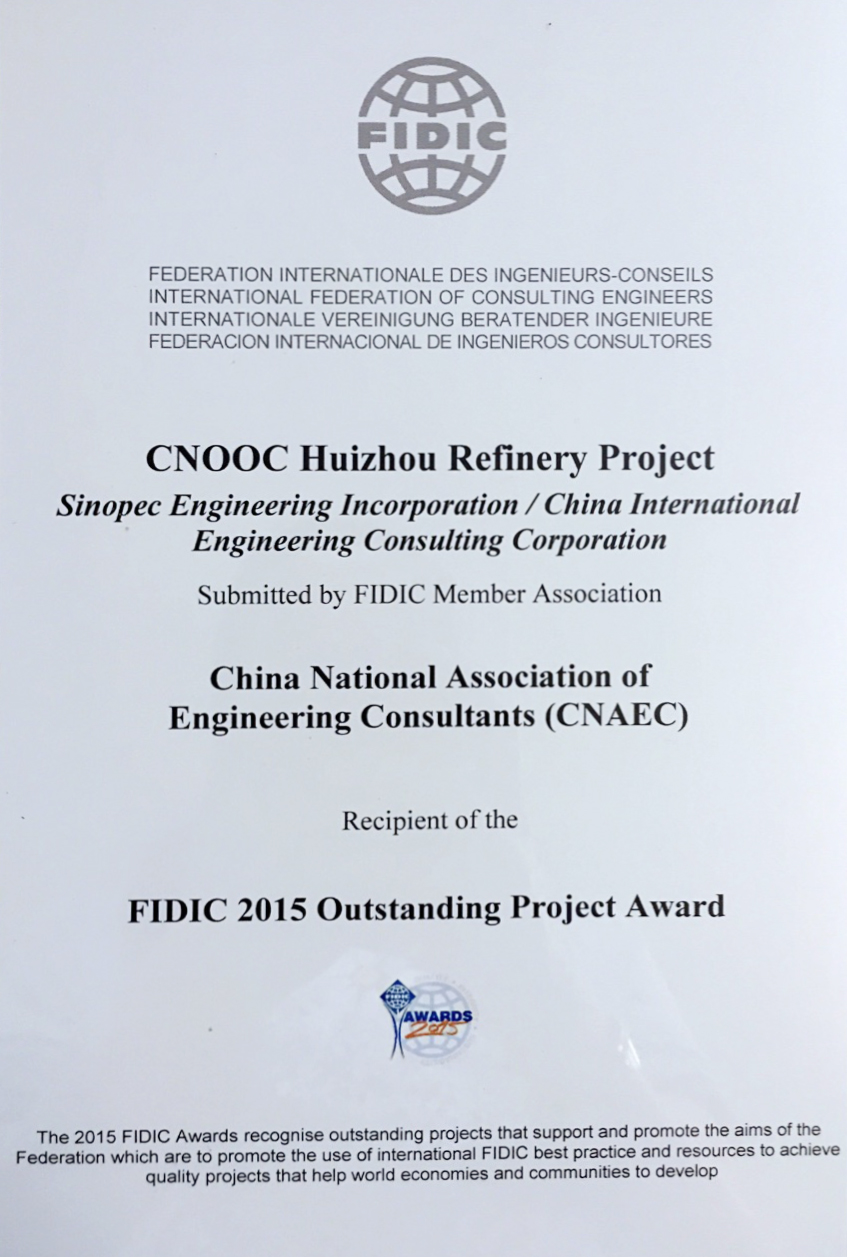 中海油惠州炼油项目工程获FIDIC奖(2015年)