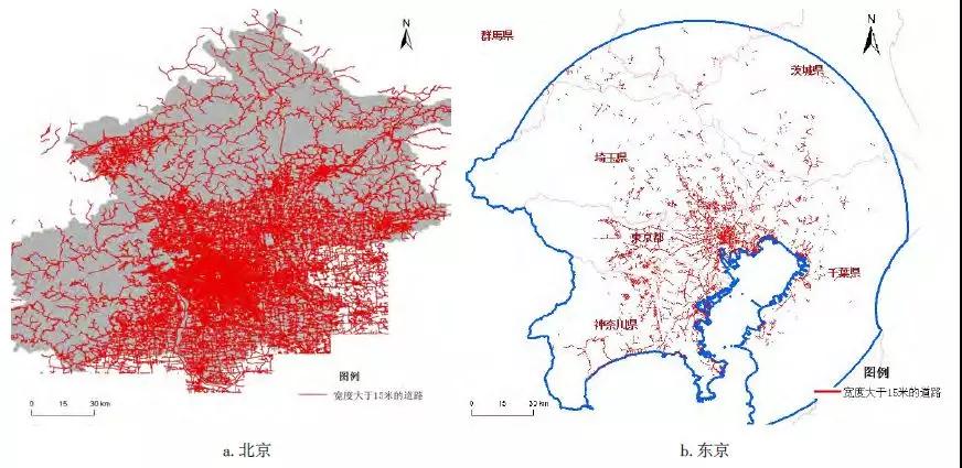 城市交通是一个城市运行的基本保障,也是一张城市名片,直接反映城市的治理能力和治理体系现代化水平。东京,日本首都,政治、经济、文化中心,全球世界级城市之一,连续多年被联合国人居署和经济学人智库(EIU)等机构评为全球最宜居的十大城市之一,其中一个重要原因就是拥有完善、高效、便捷的城市交通,创造了城市道路不拥堵的“东京模式”。 自2008年奥运会以来,北京交通基础设施建设虽然实现了跨越式发展,城市道路、轨道交通的规模和质量都大幅提升,但仍未治好交通拥堵的“大城市病”。根据高德地图发布的《2018年度中国主要城市交通分析报告》,北京路网高峰行程延时指数(出行旅行时间/畅通旅行时间)达到2.032[1],相当于因拥堵付出了2倍的时间代价。“他山之石 可以攻玉”,本文期望通过梳理东京在交通治理方面的一些经验和做法,为北京及其他城市交通发展提供有益借鉴。 一 中日都市圈交通发展状况比较 (一)比较范围界定 与东京相关的空间范围主要包括东京都和东京都市圈。 第一,东京都,是一个行政范围(即日本首都),总面积2190.9平方公里,人口1351.5万人。包括区部(即都心23区,大致相当于北京三、四环内,面积626.7平方公里,人口900万)和多摩部(类似与北京的近郊区和乡镇)。 第二,东京都市圈,是由多个行政区组合而成的区域,包括1都3县:东京都、神奈川县、埼玉县、千叶县,均在以东京为中心的80公里半径以内,面积约1.36万平方公里(与北京市域范围接近,如图1),区域内总人口约3643.9万。东京都市圈是东京都及其周边居民日常工作和通勤的空间范围,对很多东京人而言,往往是在东京都的区部工作,但是却住在周边的神奈川县或者千叶县,其中50公里半径以内是最主要的通勤范围。。该区域不仅包含连片建成区,还有大面积的农田区、山区。 图1 东京都与东京都市圈关系 因此,从地域面积、经济和社会活动联系程度、交通出行范围等因素考虑,选择东京都市圈与北京市作为比较范围更具可比性。 (二)东京都市圈与北京市交通状况对比 北京市面积1.64万平方公里,2017年人口约2171万人,汽车保留有量590.9万辆,道路总里程30662公里,轨道交通运营线路22条、运营里程608公里。如表1所示,东京都市圈面积比北京市略小,但人口是北京市的1.68倍,人口密度是北京的2.02倍,汽车保有量是北京市的2.52倍,人均保有量是北京市的2.52倍,道路规模是北京的3.79倍,路网密度是北京的4.47倍,轨道交通运营里程是北京的5.88倍。东京虽然车多人多,但道路交通却远比北京通畅,根本原因还在于两个城市出行结构和路网规模的巨大差异。 表1 东京都市圈与北京市基本情况对比 数据来源:中国、日本统计年鉴和2018年北京交通发展年度报告 根据北京市交通发展研究院公布的《2018年北京交通发展年度报告》[2],2017年北京市中心城工作日出行总量为3893万人次(含步行,如图2),其中机动出行(地铁、公交、小汽车、出租)2262万人次,公共交通(地铁、公交、出租)占机动出行的比例为58.7% ,小汽车占机动出行的比例为41.3%。相比较,东京公共交通占机动出行的比例高达86%,小汽车仅占机动出行的比例仅为14%,这就意味着北京小汽车出行比例是东京的3倍。 图2 北京市中心城工作日不同交通方式出行量 从路网规模看,东京都市圈的道路总里程是北京市的3.79倍,路网密度是北京市的4.47倍(如图3),折合成为面积,东京都市圈是北京市的2倍左右。但北京道路宽度超过15m以上的远远大于东京(如图4),特别是高速公路和城市快速道路是东京的3.25倍[3]。这说明东京都市圈的道路虽然等级较低、较窄,但密度高,微循环发达,通达性较好;北京市道路等级较高、较宽,但密度不够,通达性受影响或者路网机动性不够。 图3 北京与东京路网分布图 图4 北京与东京道路宽度大于15m的空间分布图[3] 由此可见,北京市出行车辆多但道路资源供给不如东京都市圈,特别是北京市中心城区汽车保有量过度集中,进一步加剧了需求和供给的不协调,直接造成了交通拥堵。 二 东京都市圈治理拥堵经验 20世纪八九十年代,日本交通拥堵问题日益严重。东京都政府于2000年出台了《交通需求管理东京行动计划》,从交通需求管理的角度出发提出了四大类共9项措施(如图5)[4],一是恢复现有道路的承载能力;二是自主限制驾车出行;三是促进出行方式向公共交通转化;四是减少汽车使用频率。概括起来东京治堵经验为“地上地下齐发力,软硬兼施共治堵”。