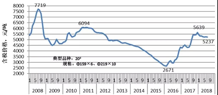 摘要:目前我国钢管行业仍存在产能过剩、产业集中度低,特别是大型国企债务负担重、成本高、竞争力不强,且面临贸易摩擦加剧等问题;本文通过简述我国钢管产业的发展概况,包括产量、表观消费量、进出口情况及无缝钢管价格走势;分析目前我国钢管行业发展存在的主要问题以及无缝钢管产业面临的形势,并提出我国钢管企业学习国外大型钢管企业的发展经验,持续推进产业整合的专业建议。 关键词:钢管;发展概况;问题;困境;建议 新中国诞生70年的历程见证着我们伟大祖国的奋斗足迹,也见证着我国钢铁行业的飞速发展。这70年间,我国钢管行业发生了翻天覆地的巨大变化。我国钢管行业,尤其是经过近二十年的高速发展,在产品结构、质量水平、技术装备等方面不断得到优化提升,已成为名副其实的世界钢管制造大国,目前正在向世界钢管工业强国迈进[1-2]。 1 我国钢管产业发展概况 我国钢管的产能已占世界首位,大型无缝钢管、大型焊接钢管和不锈钢管企业在产能规模上已经进入国际先进行列。宝山钢铁股份有限万搏网站(简称宝钢股份)、天津钢管集团股份有限万搏网站(简称天津钢管)、衡阳华菱钢管有限万搏网站(简称华菱衡钢)、内蒙古包钢钢联股份有限万搏网站(简称包钢)等无缝钢管企业的产能进入世界前10位;宝鸡石油钢管有限责任万搏网站(简称宝鸡钢管)、渤海石油装备制造有限万搏网站(简称渤海装备)、天津友发钢管集团股份有限万搏网站(简称天津友发)等多家焊管企业的产能进入世界前5位;浙江久立特材科技股份有限万搏网站(简称久立特材)的产能跻身于世界不锈钢管材制造企业的前5位。我国大中型钢管企业的装备水平已经达到国际先进水平,无缝钢管、焊接钢管机组的种类、规格齐全,装备新工艺先进。 我国专用钢管产品自给率达到99%以上。20世纪90年代中期,我国生产油井管的数量、品种和质量都还远远满足不了石油工业发展的需要。1949—1994年,45年间我国共消耗各种油井管1270万t,其中进口1150万t,国产120万t。1980年我国开始抓油井管的国产化,20世纪90年代,国家抓紧电站钢材国产化工作,经过近30年的发展,油井管国产化率从5%提高到目前的99%以上,我国也成为世界油井管生产基地。 1.1 生产情况 我国无缝钢管产量2014年达到历史最高水平后,受经济增速放缓、下游产业需求低落以及国际原油价格下滑等因素影响,2015年产量回落至2900万t左右,2018年产量继续下滑至2500万t左右。同时,随着焊接钢管生产技术的不断改进,焊接钢管产品质量得到较大提升,取代了部分无缝钢管产品,使得无缝钢管产量在钢管总产量中的占比呈现下降趋势。我国无缝钢管产量占钢管总产量的比例由21世纪初的最高48%下降到目前的30%左右。1998—2018年我国无缝钢管产量及其在钢管中的占比情况如图1所示。 2008—2017年我国无缝钢管产量在世界无缝钢管总产量中的占比情况如图2所示。2006年我国无缝钢管产量占世界总产量接近50%,2009—2017年达到65%-75%(2012年最高为74.6%)。 图1 1998-2018年我国无缝钢管产量及其在钢管中的占比情况 图2 2008-2017年我国无缝钢管产量在世界无缝钢管总产量中的占比情况 1.2 表观消费情况 2008—2018年我国无缝钢管表观消费量情况如图3所示。2008—2013年我国无缝钢管表观消费量一直维持较快增速。2013年表观消费量达到峰值2641.8万t后,随着国内经济增速趋缓,无缝钢管消费量开始下降,尤其油井管、长输管线管、煤矿用支柱管等需求都有较大幅度的下降。2017年我国无缝钢管消费量下降至1715.4万t。2018年消费量恢复增长,表观消费量2082.2万t,同比增长约21.4%,结束了连续4年的下降趋势。2018年无缝钢管市场需求回升,主要是受下游产业需求企稳回升所致,尤其是石油价格的回升,拉动了油气开发投资,进而拉动油井管市场需求增长。 按照目前的消费增长趋势以及考虑消费已进入“峰值弧顶区”,预计2019—2025年我国无缝钢管表观消费量不会超过2400万t/年。 图3 2008-2018年我国无缝钢管表观消费量情况 1.3 进出口情况 2000—2018年我国无缝钢管进出口情况如图4所示。2018年,我国出口无缝钢管422.5万t,同比增长3.1%;主要出口品种是管线管(181.7万t,同比下降8.1%,占无缝钢管出口总量的43%),油井管(135.2万t,同比增长19%,占无缝钢管出口总量的32%),锅炉管(16.9 万t,同比增长11.9%,占无缝钢管出口量的4%)。同年,我国进口无缝钢管25.8万t,同比增长44.1%;主要进口品种是锅炉管(7.2万t,同比下降18.8%,占无缝钢管进口总量的28%),油井管(6.7万t,同比增长41.5%,占无缝钢管进口总量的26%),管线管(0.77万t,同比增长了10%,占无缝钢管进口总量的3%)。 图4 2000-2018年我国无缝钢管进出口情况 1.4 无缝钢管价格走势 2008年以来国内无缝钢管(20钢Φ159mm×6mm和Φ219mm×10mm规格)价格走势如图5所示。国内无缝钢管市场价格在2008年中期快速冲高后很快回落;2011年一季度之后约5年时间,无缝钢管价格一路下跌,2016年一季度达到最低点。其中,2015—2016年是钢管行业最困难的两年,除了久立特材、江苏常宝钢管股份有限万搏网站等规模不大但品种特色明显的极少数企业外,全行业处于亏损状态。随着供给侧结构调整政策逐步实施,特别是钢铁产业大力实施去产能、取缔“地条钢”等举措,2016年二季度以来,我国钢管价格大幅上涨,2017年末创下了2008年以来价格第三高点(比第一、二高点分别低约27.0%和