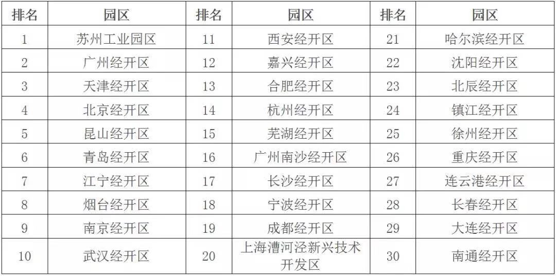 苏州工业园区 表1 2019年国家级经开区综合发展水平考核评价结果排名