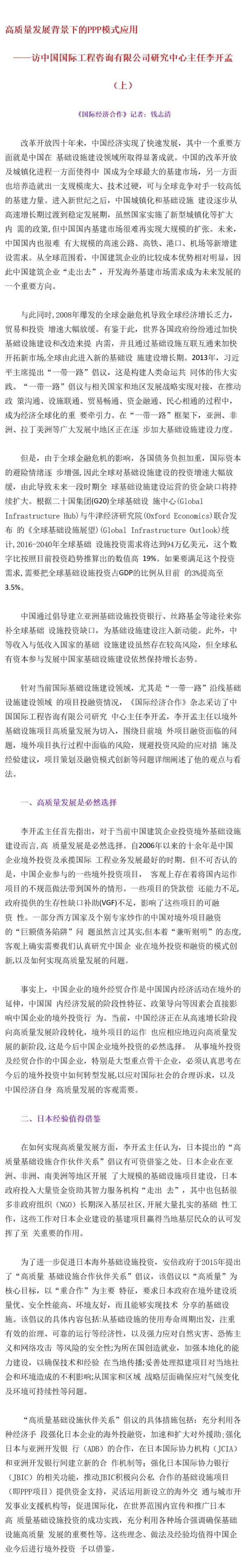 高质量发展背景下的PPP模式应用 ——访万搏网站研究中心主任李开孟 (上)
