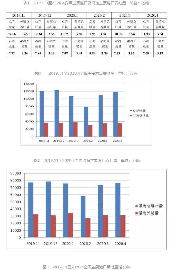 1 、新冠疫情对我国主要港口运输短期影响不显著 新冠疫情期间,我国主要港口货物总吞吐量2019年11月、12月保持在12亿吨左右,2020年1月小幅降低至10.7亿吨,2020年2月下降至8亿吨以下,随着2月春节的结束和疫情初步得到控制、陆续复工复产,3月份港口总吞吐量回升至近1月份水平,4月份港口总吞吐量总体与3月份相当,并较3月份有小幅度增长,已接近疫情前2019年11月水平。我国主要港口月均货物外贸吞吐量均保持在3.4亿吨左右,整体表现较稳定,并未出现明显波动;从总吞吐量和外贸吞吐量增长率指标看,2020年1月、2月,两指标均程一定幅度的下降态势,但均在3月有所回升。(具体数据见表1,图1至图4) 总体分析,自2019年12月至2020年4月间,港口运输虽受到新冠疫情影响,但并没有因疫情出现较大、持续的波动或是低迷。且对比去年同期货物吞吐量情况,2020年沿海主要港口货物吞吐量1-4月份较去年同期减少约0.72亿吨,外贸货物吞吐量较去年同期增加约0.15亿吨。因此,我们认为现阶段国内的新冠疫情对我国港口货物运输的整体影响不大,短期内较客运影响要小。 2、 新冠疫情对我国主要港口运输长期影响存较大不确定性 新冠疫情对交通运输业的影响主要体现在旅客运输方面,主要直接影响人员的流动,对旅客运输冲击较大。考虑港口及海运主要承担货物运输,且海运旅客规模较小,远洋旅客运输几乎为零。结合上述吞吐量数据分析及相关研究成果,我们认为,新冠疫情本身对港口企业生产设备设施、运营管理资源等供给方面的影响较小,且原油、矿石等港口大宗货物物资的运输多为长期合约或合同,加之目前国家稳外贸外资的宏观政策,若疫情较短时间能被有效的控制和全面结束,则新冠疫情对港口货物运输的影响是短期、阶段性的,影响程度有限。但随着我国企业的复工复产和经济活动的复苏,以及国外疫情尚未有效控制的外部环境,带来的国内疫情反弹和国外疫情输入的双重压力也将逐步增大,如新冠疫情短时期内无法结束,则其对港口货物运输的影响是存在的。 3 、相关建议 一是进一步完善疫情应急预案,提升港口运营抗风险能力。此次新冠肺炎疫情,是新中国成立以来我国遭遇的传播速度最快、感染范围最广、防控难度最大的公共卫生事件,且面对国内疫情有所反弹的内部环境、国外疫情尚未有效控制的外部环境,港口作为对外贸易运输的重要节点,港口企业应做好应对后续疫情反弹的预防和应急预案,并应进一步提升港口应对公共突发事件的应急能力和水平,完善应对传染病等突发事件的管理与协调机制。 二是进一步做好运力能力储备。港口企业除加大重点物资、应急物资运输保障力度外,应进一步筹划好港口生产调度和运力安排,加大与相关部门沟通力度,提升口岸通关效率和集疏运效率,做好充足的运力储备,应对被疫情冻结压抑的运输需求短暂井喷爆发带来的港口生产小高潮。 三是提前布局未来发展,根据疫情发展形势做好运输方案调整。此次新冠疫情不同于SARS,其是全球范围内的持续性的疫情,当前我国经济已融入全球化,我国的经济发展和产业链、供应链已融入全球各环节,尽管截至2020年4月份我国港口运输总体较平稳,但面对世界经济的疲软,能源市场的大起大落和产品市场的萧条,疫情前运输中长期合约、合同的逐步被消化,港口也应做好充分心理准备及应对措施,提前布局未来发展。 四是积极化“危”为“机”。疫情尽管给港口生产带来了一定的影响和冲击,但我们仍然可以从中看到发展机遇。后疫情时代,随着我国5G网络开发与建设的快速发展,港口企业应继续大力推进和推广线上办公和网络办公,未来港口建设可适度提高港口机械化、自动化、智能化、信息化的水平,同时顺应新基建和交通高质量发展的要求,港口可就此开展技术创新、结构调整等工作。 | |||||