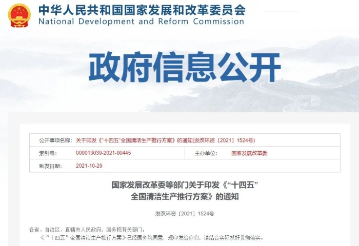 大力推行重点领域清洁生产 推动实现减污降碳协同增效 —《“十四五”全国清洁生产推行方案》解读 张英健 近日,经国务院同意,国家发展改革委联合生态环境部、工业和信息化部、科技部、财政部、住房和城乡建设部、交通运输部、农业农村部、商务部、市场监管总局印发《“十四五”全国清洁生产推行方案》(发改环资〔2021〕1524号,以下简称《方案》),明确了“十四五”期间我国推行清洁生产的发展目标、工作思路、主要任务等,指明了“十四五”清洁生产发展路径,为各地有序推行清洁生产工作提供了重要依据,对实现减污降碳协同增效,加快形成绿色生产方式、促进经济社会发展全面绿色转型,实现碳达峰、碳中和目标具有十分重要的意义。 一、《方案》准确把握新形势新要求,开创清洁生产工作新局面 “十四五”时期,我国生态文明建设进入了以降碳为重点战略方向、推动减污降碳协同增效、促进经济社会发展全面绿色转型、实现生态环境质量改善由量变到质变的关键时期。2021年3月15日中央财经委员会第九次会议强调“要实施重点行业领域减污降碳行动”,“减污降碳协同增效”。清洁生产作为落实节约资源和保护环境基本国策的重要举措,有效推动了污染防治从末端治理向全过程控制转变,是实现减污降碳协同增效的有效途径。《方案》准确把握新发展形势和生态环境工作新要求,提出未来五年清洁生产发展部署,对开创“十四五”生态环境高水平保护新格局具有重要意义。 一是把发展清洁生产作为推动生态环境保护工作的重要举措。当前我国生态文明建设仍处于压力叠加、负重前行的关键期,保护与发展长期矛盾和短期问题交织,生态环境保护结构性、根源性、趋势性压力总体上尚未根本缓解。清洁生产作为扭转粗放发展方式、源头改善环境质量的重要措施,对于实现生态环境高水平保护将发挥重要的作用。《方案》对标高质量发展要求,贯彻源头预防、过程控制和末端治理的全过程控制理念,部署突出抓好工业清洁生产、加快推行农业清洁生产、积极推动其他领域清洁生产、加强清洁生产科技创新和产业培育、深化清洁生产推行模式创新等重要措施,从清洁能源、产品绿色设计、清洁生产改造、清洁生产产业培育等全方位提出工作指引,有力并有效地促进生态环境质量的全面改善。 图片 二是把发展清洁生产作为实现减污降碳协同增效的重要手段。清洁生产通过各行业各领域不断改进设计、使用清洁能源原料、升级工艺技术与设备、改善管理、强化资源能源综合利用等方式从源头削减污染,提高资源能源利用效率,减少或者避免生产、服务和产品使用过程中污染物和温室气体的产生和排放,是当前形势下减污降碳协同增效的有力抓手。《方案》深入贯彻落实习近平生态文明思想,强化清洁生产发展路径,着力实现资源能源高效利用、污染及碳排放有效降低、多措并举协同增效。首先是深化源头治理,抓好重点领域清洁生产。以优化工业结构、转变能源消费结构作为主要途径,严格控制“两高”项目上马,加快清洁能源和无害化原料替代,实现产业结构高端化、能源结构清洁低碳化。其次是突出精准治污,打破末端治理的传统单一模式。跳出“先污染,后治理”的怪圈,要从环境的末端治理向源头减量、过程防控转变,加强推行绿色设计、绿色生产、绿色建设、绿色消费等,确保高效、绿色、低碳、安全的可持续发展模式。最后是坚持创新发展,着力提升清洁生产科技和模式创新水平。加强构建市场导向的清洁生产技术和模式创新体系,发展壮大清洁生产产业和服务业,探索清洁生产管理和区域协同创新模式。在“十四五”这一关键时期,《方案》作为我国清洁生产的顶层设计,在助力碳达峰、碳中和目标实现中必将发挥重要作用,有利于推动经济高质量发展和生态环境高水平保护。 三是把发展清洁生产作为促进经济社会发展全面绿色转型的有效途径。促进经济社会发展全面绿色转型是从根本上改善生态环境质量的必经之路,改变以过高资源能源消耗、过量污染和碳排放为主的粗放型生产方式已成为新形势下生态环境保护工作的必然选择。清洁生产是促进企业升级、经济结构优化、生产方式绿色转型的重要途径。发展清洁生产以节约资源、降低能耗为目标,以优化工艺技术、提升管理水平、健全推行机制、强化科技支撑为导向,系统提高工业、农业、建筑业、服务业、交通运输业等领域资源能源高效利用水平,改善生产过程高污染高排放等系列问题,全面提升经济社会绿色发展水平。《方案》对“十四五”清洁生产发展做出全面系统部署,针对工业能效、水效、污染物排放、资源循环利用等提出五年发展目标,有效促进经济社会全面绿色转型。 二、《方案》聚焦重点领域,强化清洁生产减污降碳协同增效作用 《方案》运用系统观念和全生命周期思想,从源头、过程、末端全方位重点抓好工业、农业、建筑业、服务业、交通运输业等领域清洁生产,系统部署了“十四五”期间推行清洁生产的工作重点和主要任务,全面促进重点领域提升减污降碳协同增效水平。 一是《方案》突出工业领域减污降碳举措要求。工业领域是污染物产生和排放的重要来源,具有污染物排放浓度高、治理难度大等特点,因此全面开展工业