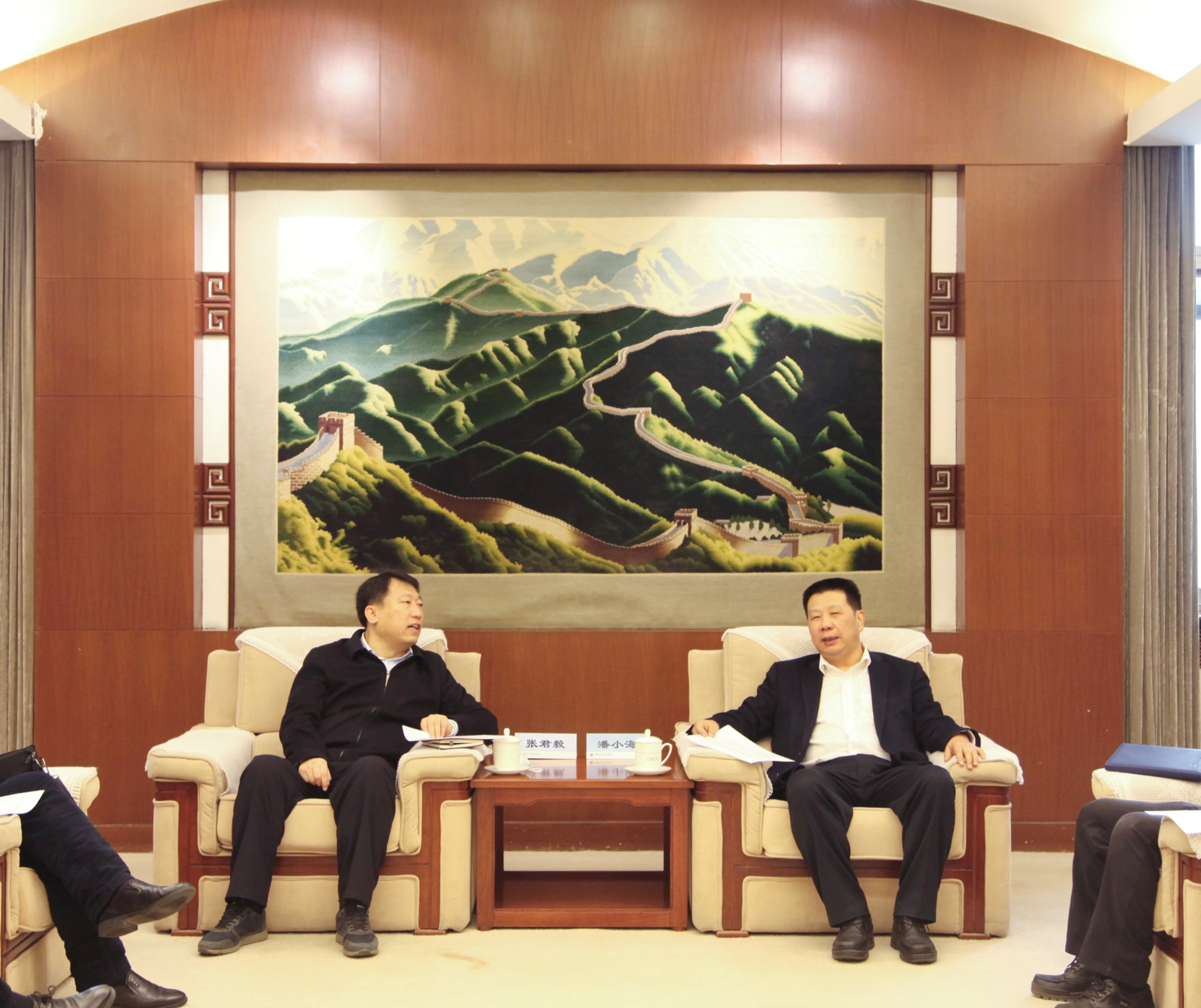 3月19日上午,潘小海副总经理接待安庆市常务副市长张君毅一行,就相关合作事宜交换意见。业务发展部、交通业务部、社会事业业务部和资源与环境业务部负责人参加。
