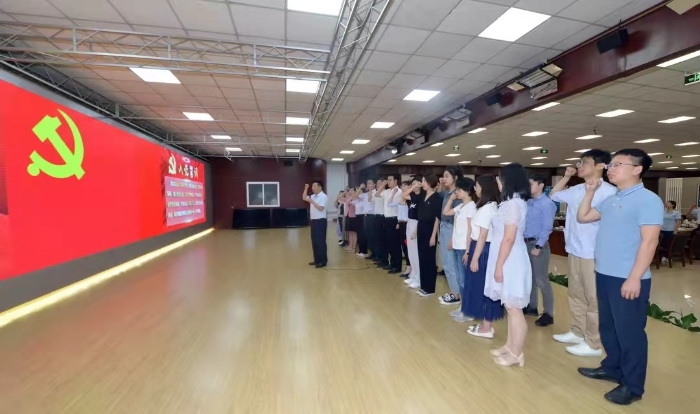 与会人员集体参观中国舰船研究院一层展厅、指挥大厅、综合电子信息试验室及科研生产任务展厅等场所,集体观摩《“船”承——中国船舶献礼建党百年宣传专题片》等影像资料,了解中国舰船发展历程。 上世纪五六十年代,面对中苏关系破裂、苏联专家撤离、缺乏技术支撑的外部压力,党中央、中央军委迅速反应,“集中力量,形成拳头”“独立自主,自力更生”地发展我国舰船科研事业,中国舰船研究院应运而生。60年来,在党的坚强领导下,一代代中船科技人员奋发图强、艰苦努力,始终传承红色基因,牢记“攀科技高峰、固海上长城”的使命,以舰船科技事业为己任,铸就水面舰船、常规潜艇、核潜艇、国产航母等大国重器、国防利器,奋力谱写了海军装备建设和我国船舶工业发展壮大的宏伟乐章,见证了人民海军航迹驶向深蓝,中国船舶工业迈向世界造船强国的光辉历程。 结合党史教育学习,双方就中国舰船发展历程中孕育形成的“航母精神”“核潜艇精神”等红色精神谱系进行研讨交流,被一代代舰船人的爱国精神、创新精神、科学精神、拼搏精神所深深鼓舞。 在潘小海同志的带领下,全体党员面对党旗重温入党誓词,坚定服务国家、贡献社会的初心使命。