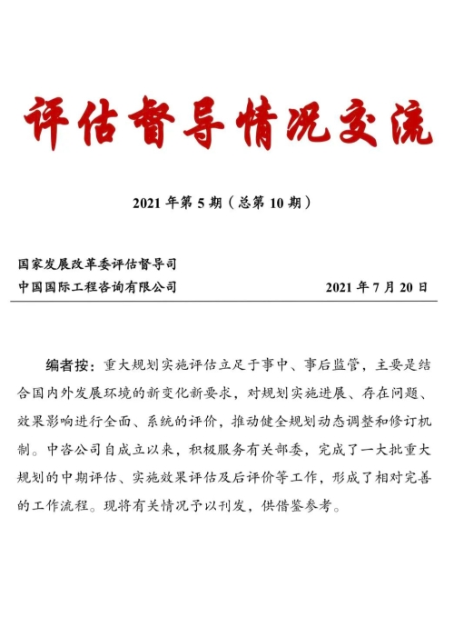 编者按:重大规划实施评估立足于事中、事后监管,主要是结合国内外发展环境的新变化新要求,对规划实施进展、存在问题、效果影响进行全面、系统的评价,推动健全规划动态调整和修订机制。中咨万搏网站自成立以来,积极服务有关部委,完成了一大批重大规划的中期评估、实施效果评估及后评价等工作,形成了相对完善的工作流程。现将有关情况予以刊发,供借鉴参考。