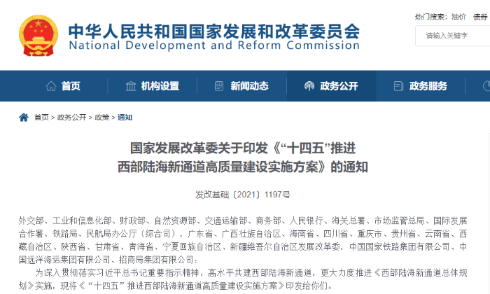 西部陆海新通道位于我国西部地区腹地,在区域协调发展格局中具有重要战略地位。“十四五”规划《纲要》明确提出实施西部陆海新通道等重大工程。近日,国家发展改革委印发《“十四五”推进西部陆海新通道高质量建设实施方案》(以下简称《实施方案》),坚持问题导向和目标导向,从加快推进主通道建设、强化重要枢纽功能、提高通道运输组织与物流效率、推动通道降低成本和优化服务、构建通道融合开放发展新局面等方面做出具体部署,具有很强的指导性和针对性,是“十四五”期间高质量推进西部陆海新通道建设的纲领性文件。 铁路作为综合交通运输体系的骨干和主要交通方式之一,是西部陆海新通道高质量建设的重点,发挥好铁路在通道中的主力作用具有重要意义。2019年,国务院批复《西部陆海新通道总体规划》(以下简称《规划》),要求打造重庆、成都至北部湾出海口大能力铁路运输通道,形成东、中、西线合理分工、相互补充的铁路运输网络。其中,东线指重庆经怀化、柳州至北部湾出海口铁路通道;中线指重庆经贵阳、柳州至北部湾出海口铁路通道;西线指成都经泸州(宜宾)、百色至北部湾出海口铁路通道。同时,《规划》要求完善运输场站设施,加强集疏运体系建设。 一、铁路骨干作用发挥保持良好态势 2019年《规划》发布以来,通道内铁路项目规划建设有序推进,主通道布局初步形成,运输能力进一步加强,骨干作用进一步发挥。一是铁路干线重大项目建设加快推进。焦柳铁路怀化至柳州段电气化改造、渝怀铁路增建二线等项目建成投运。贵阳至南宁、叙永至毕节、隆黄铁路隆昌至叙永段扩能改造等项目建设抓紧推进。二是场站设施和集疏运体系不断完善。重庆团结村铁路集装箱中心站二期、鱼嘴铁路货运站扩建北场站、贵阳改貌铁路口岸一期等工程建成投运。钦港支线扩能改造、钦州港东线电气化改造等项目建设稳步推进。三是运输规模和联运效率持续提升。重庆“一主两辅多节点”始发集结体系日趋成熟,北部湾港集装箱进出口流程不断优化,通关便利化持续推进,运输组织不断加强、联运效率不断提升,铁海联运班列规模持续扩大。 西部陆海新通道地理位置示意图 二、通道内铁路发展仍存在短板和不足 在西部陆海新通道加快建设的同时,通道内铁路发展仍存在一些短板和不足,主要体现在以下几个方面。一是干线通道仍存在短板。虽然通道主体骨架已基本形成,但还有部分干线有待加快贯通,部分路段存在能力紧张问题。例如,黄桶至百色铁路作为西线通道的重要组成部分,由于通道整体运输需求、沿线经济据点覆盖等因素,目前仍处于前期工作阶段。二是“前后一公里”建设有待加强。目前,通道内铁路货运网络干支不协调、“前后一公里”运输不畅的问题较为突出。一方面通道内部分老旧铁路支线处于闲置低效状态;另一方面在通道运量大幅增长背景下,物流园区企业专用线、北部湾部分港口支线等“前后一公里”的集疏运体系仍不完善。三是运输组织管理水平和运营效益有待进一步提升。在铁海联运班列开通过程中,个别地市存在一定程度上的“枢纽争夺战”“起点卡位战”,面临加强配合、畅通节点、优化组织、提高效率的问题。此外,由于西部陆海新通道仍处于市场培育阶段,与江海联运或其他铁海联运通道相比缺乏价格优势,加之沿线各地交通条件和资源禀赋趋同,容易导致资源浪费甚至恶性竞争。 三、《实施方案》为“十四五”期间高质量推进大能力运输通道建设指明方向 “十四五”时期是建设西部陆海新通道的关键时期。在《规划》的基础上及时印发《实施方案》,进一步指明了“十四五”期间通道建设的具体方向,有利于统一思想、凝聚力量、加强协作,更好发挥铁路骨干作用,高质量推进西部陆海新通道建设。 一是坚持补齐短板,增强铁路通道整体运输能力。《实施方案》聚焦铁路通道短板不足,以“一盘棋”思想统筹谋划通道发展,贯通干线通道,完善路网布局,着力增强铁路通道整体运输能力。《实施方案》明确提出,以打通缺失路段为重点,开工建设黄桶至百色铁路等项目,优化完善西通路;以打造大能力通路为重点,稳步推进贵阳至南宁高铁建设,加快提升中通路运输能力;以提升既有线能力为重点,加快建设重庆至黔江高铁,释放既有干线铁路货运能力,进一步完善东通路。在此基础上,尽快形成东中西线通路合理分工、核心覆盖区和辐射延展带密切沟通、与东南亚地区互联互通的西部陆海新通道陆路交通网络。 二是坚持优化功能,完善沿线枢纽布局和集疏运体系。《实施方案》结合区域经济条件、区位特点和发展需求,优化完善沿线物流枢纽功能和布局,提出推动重庆物流和运营组织中心建设,建设成都国家重要商贸物流中心,稳步推进沿线国家物流枢纽和重要物流节点建设。同时,《实施方案》进一步强化支线铁路、专用线以及铁路货场、多式联运中心等集疏运体系规划建设,着力扩大路网覆盖范围、连接沿海港口和内陆枢纽、推动综合运输体系融合发展,打通“前后一公里”,充分发挥“毛细血管”引流上线功能。 三是坚持提质增效,提升铁路运输规模和效率效益。《实施方案》以运输协调和运营模式创新为抓手,提出优化铁路运输组织,加强集装箱中转集结,建立健全信息共享