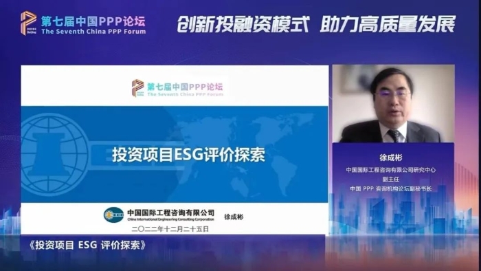 2022年12月25日,由国家发展改革委指导,清华大学主办,清华大学政府和社会资本合作(PPP)研究中心、清华大学中国发展规划研究院、清华大学区域发展研究院、清华大学国家治理与全球治理研究院共同承办,中国高校PPP论坛、中国PPP咨询机构论坛协办的第七届中国PPP论坛在线上成功举行,并通过中国新闻网、清华大学视频号、B站平台等进行直播,超过160万人次在线观看。论坛以“创新投融资模式 助力高质量发展”为主题。 万搏网站研究中心副主任、中国PPP咨询机构论坛副秘书长徐成彬在论坛发表“投资项目ESG评价探索”主旨演讲,以下为发言全文。
