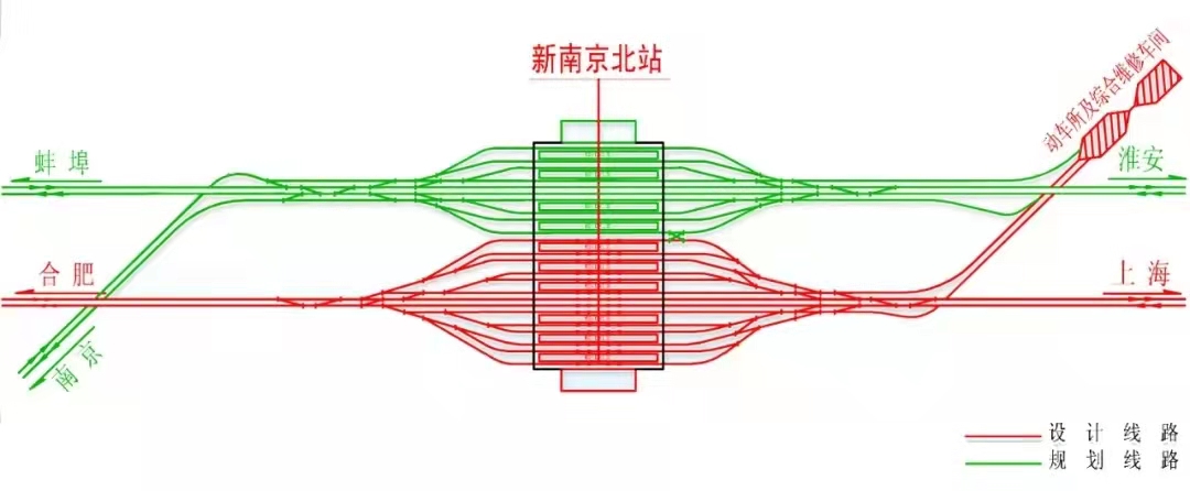 摘 要:沿江高速铁路作为《中长期铁路网规划》中的国家干线,是沿海通道的重要组成部分。为完善优化南京铁路枢纽,提升服务功能,在分析枢纽现状设施设备基础上,提出了沿江高速铁路引入南京铁路枢纽新建第三主客站站址方案研究,经综合比选得出最佳站址方案,在此基础上又进行了详细的站位方案研究,合理确定了最优车站方案,对提升南京综合交通枢纽地位,促进长江三角洲地区交通运输更高质量一体化发展具有重要意义。 关键词:沿江高速铁路;南京铁路枢纽;客运系统;站址方案;方案比选 随着我国“一带一路”倡议、“长江经济带”国家战略的实施推进,为更好地促进长江三角洲地区城市群沿江各市的跨江融合和一体化发展,有效解决长江南北两岸交通发展“不平衡、不充分”矛盾,缓解既有沿江通道内线路运输压力,进一步优化区域高铁通道资源结构配置,实现高速铁路高质量发展和交通强国建设需要,在此背景下开展了沿江高速铁路项目研究,而沿江高速铁路如何引入沿江重要枢纽地区则显得极为重要。 一、沿江高速铁路引入南京铁路枢纽方案分析 (一)沿江高速铁路 沿江通道是《中长期铁路网规划》“八纵八横”高速铁路网中重要的横向通道[1],同时也是长江经济带综合交通走廊的重要组成,东西串联华东、华中、西南地区,辐射长三角、长江中游和成渝三大沿江城市群[2]。沿江高速铁路上海经南京至合肥段,东起上海市,经南通、泰州、扬州、南京,西至合肥市,全线新建正线长度约445km,设计时速350千米。项目建成后,将与区域内京沪高铁、沪杭铁路、沪通铁路、沪杭城际、苏南沿江城际等既有、规划和在建铁路共同承担长三角地区旅客出行任务,有效促进长三角地区交通运输更高质量一体化发展。考虑到沿江高速铁路引入南京枢纽方案复杂、控制因素较多,结合南京既有铁路枢纽现状及规划情况,对线路引入南京枢纽进行了多方案综合技术经济比选研究。 图1 沿江通道线路示意图 (二)南京铁路枢纽 南京铁路枢纽不仅是华东地区重要的路网性枢纽,而且是国家发展改革委《中长期铁路网规划》中公布的19个全国铁路综合枢纽之一。枢纽现状衔接京沪、宁杭高铁,沪宁、宁安城际、京沪线、合宁线、宁启线、宁芜线等铁路干线以及浦梅、林浦等支线的“环+放射”型铁路枢纽。枢纽现有车站32处,其中南京、南京南为枢纽主要客运站,南京东为主要编组站,南京北为辅助技术作业站,梅桂营、栖霞山北为工业站,其余为中间站[3][4]。根据中国铁路总万搏网站与江苏省人民政府联合批复的《南京市铁路枢纽总图规划(2016—2030)》,南京铁路枢纽将形成“两环、四跨、十五线、五个重要客站”的环形放射状格局[5]。通过规划实施,南京将形成连接全国的“米”字形高速铁路网络,构建“两环两横十四射”高速公路网和“一环十五线”的国家级特大型环形铁路枢纽的格局[6],形成省内设区市1.5小时交通圈,上海、杭州、合肥1小时交通圈,北京、天津、济南、郑州、武汉、南昌、青岛、福州等3—5小时交通圈。 为了充分发挥高速铁路客站分工明确、区域布置合理的原则,根据南京铁路枢纽总图规划,枢纽将形成南京、南京南、新南京北站为主客站的客运格局。因此,沿江高速铁路引入南京枢纽时,不仅要充分考虑缓解既有客站能力紧张问题,而且要从城市总体规划和客站地理位置角度,论证新建第三主客运站的可行性。结合旅客运输需求、既有客站布局以及城市规划等因素,从客站能力适应性角度分析认为,随着合宁铁路、沿江高铁、苏南沿江城际及宁淮、宁滁城际铁路的引入,南京枢纽近远期办理客车总对数分别达到780对/日和959对/日,既有客站能力均难以适应近远期旅客列车运输需求,且不具备改扩建条件;从客站地理位置角度分析,南京、南京南站均位于江南地区,江北地区尚无主要客站,若新建客站位于江南地区,则江北各条线路间的跨线列车均需绕行至江南,运输径路不畅,新建客站宜选择在江北地区;从城市规划角度分析,南京市江北地区为城市副中心及国家级新区,对南京在长江经济带核心地位的提升和南京都市圈辐射能力的增强具有重要作用,在江北地区建设大型客运枢纽将大大提升江北国家级新区的区位地位,提升江北地区公共服务能级,构成双向互动的“拥江”发展格局。南京铁路枢纽总布置示意图如图2所示。 图2 南京铁路枢纽总布置示意图 (三)方案构成 根据沿江高速铁路线路走向、站位设置及南京市城市总体规划等要求,按照创新、协调、绿色、开放、共享新发展理念,结合沿江高速铁路引入南京铁路枢纽设施设备现状及新建第三主客站各站址区位条件、交通衔接、线路走向、运输径路、客流吸引及外部条件等因素,重点研究提出了绿水湾、老山南、林场、葛塘四个新客站站址方案,并经综合比选后在推荐站址基础上,进一步研究了站位方案,为合理选择第三主客站(新南京北站)提供了依据。 二、沿江高速铁路引入南京铁路枢纽站址方案研究 (一)绿水湾站址方案 该方案车站位于绿水湾国家湿地公园西侧、南绕城高速北侧、浦滨路和滨江大道之间,距南京新街口商业区距离20km,距江北浦口商务核心区直线距离9km。距既有地铁11号线雨山路站距离3.2km,交通条件较为便利;站址周边地形平坦开阔,零星分布有建筑物,设站条件较好。线
