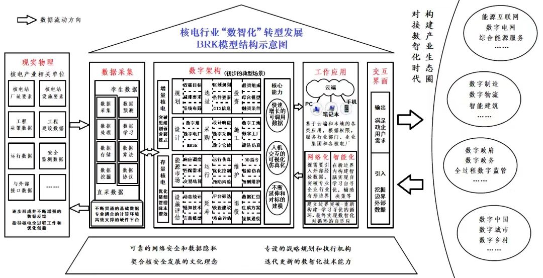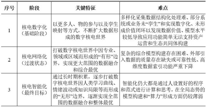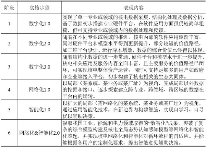| 编者按:我国力争2030年前实现碳达峰、2060年前实现碳中和,是党中央经过深思熟虑作出的重大战略决策,事关中华民族永续发展和构建人类命运共同体。能源领域碳排放总量大、占比高,是实现绿色低碳转型和高质量发展的关键。万搏网站能源业务部成立了以部门领导为龙头、以青年党员为骨干的“3060”研究小组,贯彻新发展理念和能源安全新战略,对以新能源为主体的新型电力系统、碳排放和水电、新能源、核电、储能、煤炭等方面高质量发展进行了探索性研究,以推动构建清洁低碳安全高效的能源体系。为促进研究成果的应用,本公众号将核心研究成果以系列文章的形式陆续刊发,供业界同仁参考。 “两个构建”背景下核电“数智化”发展思路与路径研究 黄文 丁岚 柴进进 摘要:在我国能源和电力产业,“数智化”因对能源要素配置效率优化、供需匹配协调、综合能效提升乃至“两个构建”实施成效的关键作用,长期以来备受各方关注。但在核电领域,对于“数智化”发展总体目标和实施路径的研究一直被忽视。鉴于此,本文在总结相关行业经验的基础上,总结提出核电“数智化”发展的总体目标及相关要素,并以当前我国核电发展现状及“数智化”的关键需求为切入点,探讨形成了近期我国核电“数智化”发展实施路径。 关键词:核电;“数智化”;总体目标;BRK模型;发展路径 一、引言 当前我国能源和电力产业正在经历“百年未有之大变局”,在国家“碳达峰、碳中和”重大战略决策指导下,以“两个构建”(构建清洁低碳安全高效的能源体系、构建新能源占比逐渐提高/以新能源为主体的新型电力系统)为重点任务的能源绿色低碳转型行动正稳步推进[1]。总结世界能源低碳转型的历史经验,其往往与科技革命相伴相生、融合并进,以工艺技术的不断创新和产业模式的升级再造等,在能源低碳转型同时实现效率提升,推进社会生产力发展[2]。如能源从木柴到煤炭、煤炭到石油及电力的低碳转型分别与两次革命中蒸汽机以及内燃机、发电机的发明和广泛应用密不可分[3]。 目前,全球新一轮科技革命正当其时,以大数据、云计算、物联网、移动互联网、人工智能等为代表的“数智化”(数字化、网络化、智能化)技术及产业正不断壮大,已实际成为这一轮变革的核心驱动和关键内容。在我国,“数智化”技术也在全面渗透基础工业及经济社会发展,不仅全面影响和改变了人们的生产生活方式,并已催生和推动我国数字经济向更繁荣、更深化和更规范的阶段发展[4]。 在我国能源和电力产业,“数智化”也因对能源要素配置效率优化、供需匹配协调、综合能效提升乃至“两个构建”实施成效的关键作用,长期以来备受各方关注。围绕如何通过“数智化”发展促进我国能源低碳转型,不少学者及相关机构已开展了大量研究。具体研究分为三类,第一类是以能源互联网框架下的综合能源系统为载体,聚焦“数智化”技术对多能源参与调节的支撑作用[5-7],保障能源安全供应和高效匹配;第二类是以“双碳目标”下新型电力市场为载体,研究能源系统和市场数据的互联互通、有机耦合[8-10],实现系统能效和市场绩效提升;第三类则从“数智化”自身出发,对在能源各行业的相关理念、关键技术及应用前景进行阐述[11-13]。目前这些研究多关注于能源流通和消费领域,如电网和电力市场,生产领域则以火电、可再生能源或围绕其建立的综合能源系统为主要研究对象,如“源网荷储”“风光水火储”等,对核电“数智化”发展的研究分析相对较少。 现有对核电“数智化”发展的研究,集中在各核电集团运行技术部门或核电运营单位开展。如汪映荣、徐国彬、伍吉泽和干依燃等[14-17]分别论述了数字化核电厂的定义、5层模型、功能架构和关键技术等。潘保林、王谦和张陆洋等[18-20]分别研究分析了数字孪生、智能技术和5G通信技术等在核电领域中的可能应用场景。邱杰峰和孙宇[21-22]分别针对核电具体堆型(“华龙一号”)及建设阶段进行了数字化实践探索。孙奇[23]提出了智能核电理念、全过程实施总体架构及部分应用方向。但归纳总结相关调研文献,研究内容多集中在“数智化”技术在核电行业本身的应用方向及相应的功能前景,对核电“数智化”发展总体目标和实施路径的研究受到忽视。本文尝试从该视角出发,在总结相关行业经验的基础上,总结提出核电“数智化”发展的总体目标及相关要素,并以当前我国核电发展现状及“数智化”的关键需求为切入点,探讨形成近期我国核电“数智化”发展实施路径。 二、电力行业对数字化和智能化的界定及理解 数字化电厂的概念早在20世纪末就已出现,早期电厂采用了数字化控制技术,就可算作数字化电厂。2012年我国电力行业标准《火力发电厂热工自动化术语》(DL/T701-2012)仍部分沿用了该传统思路,将数字化电厂定义为“电厂数字化达到一定程度后的概念。电厂各级控制和管理系统(包括现场设备等基础单元)均进入数字化后称为数字化电厂”。 随着信息技术对电力生产过程效能的提升,逐渐为电力行业所认识和关注,电厂智能化的概念也就在2010年前后应运而生。《火力发电厂热工自动化术语》对电厂智能化的定义是,“广泛采用现代信息处理和通信技术、智能传感技术、智能执行机构技术,以及智能控制方法和管理