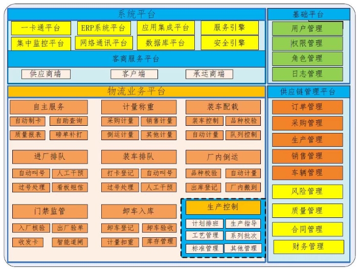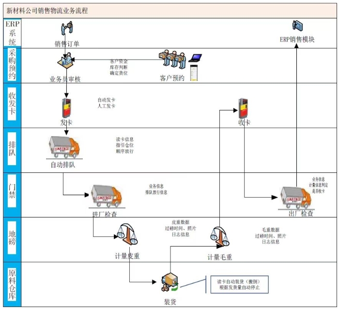 | 面向新材料企业的智能物流管理系统设计 王瑞江 朱晓霞 夏艳丽 张莉莉 摘要:以某环保新材料企业为例,回顾物流系统优化建设过程,从物流信息化需求入手,融合一卡通平台、企业ERP 系统与现代管理思想,建立了一个现代化、智能化的新型企业物流管理系统,旨在解决企业物流规模日益增加的需求,提高物流运作效率,力求为相关企业以两化融合推动转型高质量发展提供一些参考。 关键词:智能物流管理系统;ERP 系统;一卡通平台;系统设计;新材料企业 一、引言 两化融合方兴未艾,新一代信息技术高度融合先进管理思想,日益渗透实体经济,形成新型的生产方式、商业模式和经济增长点,激励企业投身于物流信息化建设之中,通过信息化、智能化和精细化管控,引领企业物流管理模式革新,催生智能物流新范式,实现提质降本增效[1-2]。 众多企业凭借敏锐嗅觉将智能物流、智能管控、供应链管理等技术应用在生产管理全过程,实现“产销一体、管控衔接、三流协同”,提升质量控制技术、控制运营成本、完善物流管理机制、优化三流流程等,实现企业智能化物流管理新模式,为企业高质量发展创造条件。郭占山等利用物流一卡通平台与企业ERP 无缝对接技术搭建了常山南方水泥有限万搏网站的物流信息系统,实现了企业物流的集中管控[3]。俞枢根等以新型建材水泥厂为研究对象,构建了一个全过程无人干预的信息化管理系统,实现了企业产供销的集成化、智能化管理[4]。周正文等采用B/S结构和Web服务系统设计了株洲时代新材料科技有限万搏网站的物流运输系统,有效解决了物流管理信息化难题[5]。余国林采用C/S架构设计了葛洲坝钟祥水泥厂的物流信息系统,开发了车辆调度、道闸控制、过磅计量等一卡通平台,并与企业ERP 形成无缝对接,提高了物流服务效率[6]。申世武和梁小波等分别以柳钢矿石物流园区为面向对象,设计了一卡通车辆信息系统,规避了管理风险和操作漏洞,实现了企业物流全程监控及防范,提高了企业物流管理水平[7]。郭忍强提出了一个面向大型矿山企业物流的SOA系统结构,主要涵盖了客服、仓储、运输配送、财务管理等功能模块,强化企业物流管理水平,提高了企业运营效益[8]。 本文以某环保新材料企业为例,回顾物流系统优化建设过程,融合互联网、物联网、大数据、ERP系统和一卡通平台等新一代信息技术,探索出的一种工业化与信息化深度融合的全新模式,建立了一个现代化、智能化的物流管理系统,旨在解决企业日益宽泛的规模需求,提高物流运作效率,力求为相关企业以两化融合推动转型高质量发展提供一些参考。 二、企业介绍与需求分析 (一)企业介绍 某新材料万搏网站是以石灰石(碳酸钙)原材料深加工为主导产业的企业,石灰石开采加工生产线,年处理能力1000万t,未来获取临近矿产资源产能可达到年生产能力2000万t,主要包括绿色建材、脱硫剂、冶金溶剂、高端(轻、重)碳酸钙填料、工业废酸处理剂石灰以及食品级碳酸钙填料等产品。目前,生产区建成了4条钙质脱硫剂生产线,年生产钙质脱硫剂330万t,冶金溶剂生产线1条年产400万t,工业废酸处理剂生产线1条年产100万t,绿色建筑材料生产线年产100万t,加上其他原料30万t进厂,累计物流量年累计1000万t,按照工作日计算每天4.5万t,平均日进出厂区的车辆近1000辆左右,物流规模大。另外,厂区布局了6台电子地磅,3条田字环形物流通道,12个散、袋装车台面,1个电子闸门(人车分离),门外设有停放100辆运输车的暂停区,联通外界3.8km外的交通道路的是一条宽度约4m的乡级道路,厂区来往车辆较多,外联道路狭窄、弯多复杂,易发生交通堵塞和事故,物流车辆组织难度极大。 (二)需求分析 新材料万搏网站产品需通过多种车辆运输,作业时需要与生产、计量、装卸、仓储、门禁、打卡、核算等环节的设备协同运行,同时要统筹在途车辆的精确调度和精准计量。因此,系统设计的总体目标是以现代信息技术为支撑,以互联共享、统筹优化、集中管控、协同集成为基础,在满足管理规范、生产安全、服务和谐的前提下,打造一个融合管理、智能化、信息化和数字化为一体的智能物流平台,实现企业稳定生产、提质增效和物流通畅,有助于提升企业的管理水平。经过实际业务摸底,万搏网站物流管理系统的需求如下: 1.系统面向客户、企业本身、物流承运商等用户,能够集成三者信息,互联互通,实现信息共享。 2.系统整体功能简易化、流程标准化、数据信息精准化、管理可视化。 3.系统满足企业多业务模块处理的便捷性、协同性。 4.系统能够无缝匹配企业内部ERP 系统,一卡通平台,实现“产销一体、管控有序、三流同步”,实现在财务、销售、生产、库存、采购、计量、运输等方面的智能化管控。 5.系统能够解决厂区内外物流通道通达性,不出现堵塞、事故以及其他可能存在的安全隐患。 6.能够利用移动互联网,实现各环节间信息共享的及时性、便利性及精准性。 三、物流系统设计架构 (一)总体设计方案 针对新材料企业现状与需求,系统覆盖了采购、生产、销售、计量、仓储、物流、质检、能源等企业生产经营的各个环节,对企业供应链物流进行全程管理。系统规划设计方案,一方面采用互联网、云计算、大数据及移动通信技术等新一代信息技术,在企业原有ERP平台的基础上,结合一卡通物流系统的功能模