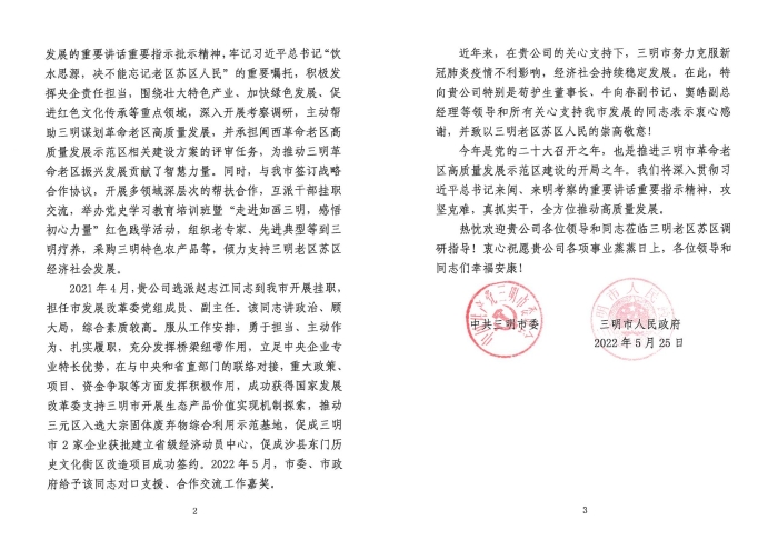 这里有鲜美可口的沙县小吃 这里有服装精致考究的梅林戏 这里曾经留下习近平总书记12次到访的足迹 这里是:福建三明 习近平总书记长期关心三明发展、情系老区人民,在福建工作期间,先后11次到三明调研考察,作出了“青山绿水是无价之宝”“画好山水画”“不要忘记老区”等一系列重要指示。2021年3月,习近平总书记再次亲临三明考察指导,对三明老区苏区发展特别是医改、林改、乡村振兴、沙县小吃等作出新的重要嘱托。 中咨万搏网站作为咨询服务“国家队”,深入贯彻落实习近平总书记重要指示精神,承担了全国革命老区振兴发展的一系列咨询服务任务。在评估工作中,中咨万搏网站深入调研三明市特色亮点,报送关于三明市统筹推进“五位一体”总体布局和协调推进“四个全面”战略布局的调研报告。2020年万搏网站领导牵头,组织开展调查研究,形成上报政策研究报告,“三明实践”被中宣部树为重大典型。 中咨万搏网站与三明“结缘”已深,去年开始互派优秀年轻干部挂职交流。2021年4月,赵志江作为中咨万搏网站选派的优秀年轻干部赴三明市挂职锻炼,任三明市发改委党组成员、副主任。挂职期间,赵志江始终以合格共产党员的标准要求自己,积极发挥模范带头作用,从央企到地方,迅速转变工作角色,沉下心扑下身,积极谋划,履职尽责,勇于担当,高标准、高质量完成挂职各项任务。 三明日报报道赵志江事迹 激活红色资源 深挖革命老区示范区新机遇 习近平总书记指出,福建是革命老区,党史事件多、红色资源多、革命先辈多,开展党史学习教育具有独特优势。三明市既是革命老区,也是全国率先开展精神文明建设的城市之一。如何发挥自身战略咨询专业优势,帮助革命老区换新颜,赵志江先从三明市参与革命老区高质量发展示范区建设入手。 赵志江积极参与革命老区振兴发展“1+N+X”重大政策跟踪对接,先后10余次赴国家发改委振兴司、地区司等7个司局,对接闽西革命老区高质量发展示范区建设方案,争取相关事项。目前该方案已获国务院批复(国函﹝2022﹞20号),国家发改委正式印发实施(发改振兴﹝2022﹞424号)。 为持续支持三明老区苏区经济社会发展,开展多领域深层次帮扶合作,三明市发改委、林业局、交通局三位同志到中咨万搏网站相关部门挂职交流,先后承担三元区大宗固废综合利用产业发展研究、三明市生态产品价值实现机制研究等课题。 中咨万搏网站与三明市合作,成功举办党史学习教育培训班暨“走进如画三明,感悟初心力量”红色践学活动,组织老专家、先进典型等赴三明疗养,采购三明特色农产品,为三明革命老区高质量发展注入源源动力。 中咨万搏网站在三明举办党史学习教育专题培训班开班现场 绘就生态画卷 赋能三明绿色发展新蓝图 习近平总书记在武夷山国家公园智慧管理中心考察时指出,要坚持生态保护第一,统筹保护和发展,有序推进生态移民,适度发展生态旅游,实现生态保护、绿色发展、民生改善相统一。 赵志江多次赴省发改委与工信厅汇报对接,助推三元区成功入选大宗固体废弃物综合利用示范基地,全国仅有40家。充分利用在闽工作期间奠定的良好基础,主动协助市发改委分管领导与有关部门汇报,做好大田县闽江流域山水林田湖草生态保护修复试点工程项目验收。该项目获得省级正向激励资金2500万元。 此外,赵志江还积极做好体制机制创新案例编辑报送工作,案例“将乐县打造‘绿水青山’赢得‘金山银山’”获得省机关党工委组织的改革创新评选活动“优秀奖”。 发挥智库优势 探索老区高质量发展新路径 在三明考察期间,习近平总书记详细了解了沙县小吃发展现状和前景。他指出,乡村要振兴,因地制宜选择富民产业是关键。 赵志江与专家团队围绕三明市产业升级、乡村振兴、绿色发展、民生提升等重点领域深入调研,谋划沙县小吃产业、绿色经济、氟新材料产业等重点专项发展思路,承担闽西革命老区高质量发展示范区相关建设方案评审任务,以及包括三明在内的革命老区重点城市与发达地区部分城市对口合作方案的论证工作,为三明革命老区振兴发展贡献了“中咨方案”。 在招商方面, 赵志江积极投身“大招商 招好商”工作,多次陪同闽西南城市协作开发集团相关领导赴沙县区东门历史文化街区、小吃文化城、夏茂镇等重点招商项目考察,组织召开座谈会,促成沙县东门历史文化街区改造项目成功签约,项目计划总投资10亿元。按照全力打好“八大攻坚战役”工作部署,他积极参与全市重点项目专题调研和“一线两推”工作,打好招商引资“组合拳”。 赵志江精心组织相关企业申报省级经济动员中心,主动赴省主管部门汇报申建事宜,促成三明市2家企业获批建立省级经济动员中心,打破三明市连续5年无新增获批的局面,得到省级补助资金30万元。 贯彻新发展理念 实现三明“放管服”改革新突破 习近平总书记强调,推动高质量发展,首先要完整、准确、全面贯彻新发展理念。要坚持系统观念,找准融入构建新发展格局定位,优化提升产业结构,加快推动数字产业化、产业数字化。 赵志江组织制定《三明市“互联网+监管”应用优化提升方案》《推进全市政务服务“就近办、自助办”工作方案》《三明市落实国家和省政府深化“放管服”改革工作措施清单》《三明市“放管服”改革攻