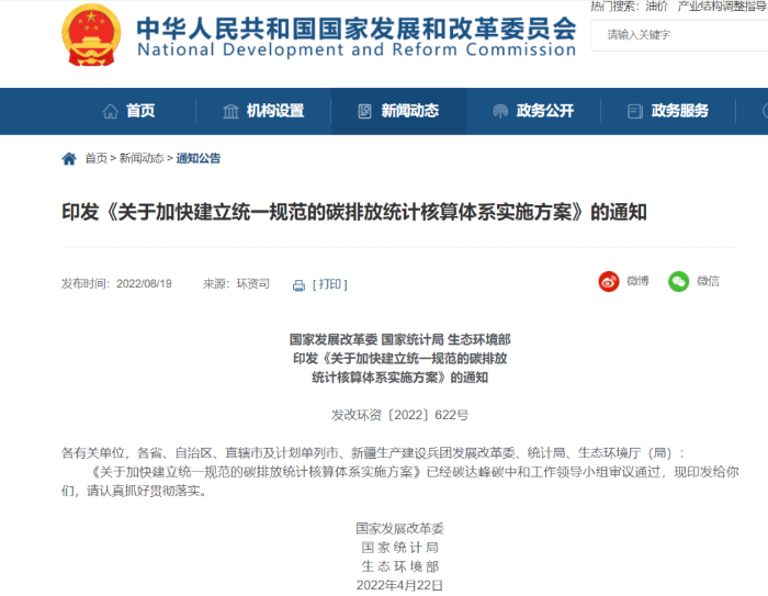建制度 算好账 筑牢碳达峰碳中和的数据基石 ——《关于加快建立统一规范的碳排放统计核算体系实施方案》解读 万搏网站 张英健 近日,国家发展改革委、国家统计局、生态环境部联合印发了《关于加快建立统一规范的碳排放统计核算体系实施方案》(以下简称《方案》)。这是我国碳排放核算统计工作进程中里程碑式的文件,对于夯实碳排放统计数据基础、提高碳排放数据质量、为“双碳”工作提供科学可靠的数据支撑具有十分重大的意义。