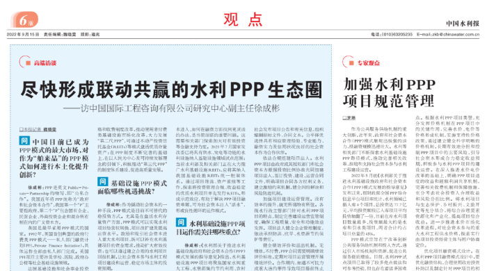 徐成彬 | 尽快形成联动共赢的水利PPP生态圈