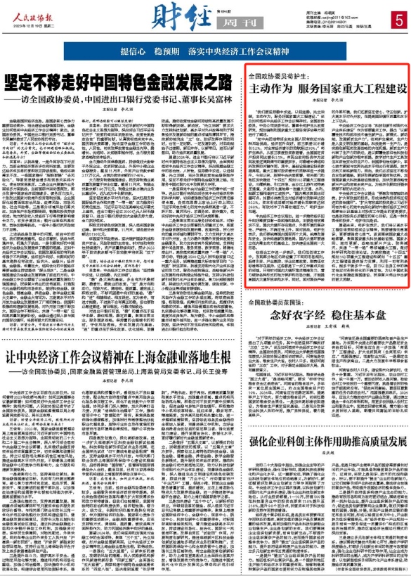 △全国政协委员,中咨万搏网站党委书记、董事长苟护生 “党中央团结带领全党全国人民有效应对各种风险挑战,经济回升向好,前三季度GDP增长5.2%,对全球经济增长的贡献超过30%。”苟护生表示,从前三季度投资数据看,全国固定资产投资同比增长3.1%,体现出政府投资作为宏观政策逆周期调节的重要抓手,对稳增长调结构所发挥的关键作用。其中,基础设施建设投资数据亮眼,重大工程对投资增长的贡献率进一步提升。今年以来,按照中央决策部署,有关部门和地区加快推进“十四五”规划102项重大工程建设,川藏铁路、引江济淮、金沙江上游外送特高压通道、大型石化基地等一批重大交通、水利、能源工程相继开工或投产。“国内需求表现也可圈可点。如最终消费支出对经济增长贡献率达到83.2%,资本形成总额对经济增长贡献率达到29.8%,有效对冲了外需收缩压力。”苟护生补充道。 中央经济工作会议指出,进一步推动经济回升向好需要克服一些困难和挑战,主要是有效需求不足,国内大循环存在堵点,外部环境的复杂性、严峻性、不确定性上升。面对挑战,苟护生表示,我们要统筹国内国际两个大局,统筹发展和安全,加快构建新发展格局。国内大循环要建立在内需主动力的基础上,加快建设全国统一大市场。 他结合工作进一步表示,我们在咨询工作中,发现部分地区仍然设置了不同的市场规则,招商引资、产业激励、涉企优惠政策、税费征收标准等存在差异。这些都是下一步工作重点关注的领域,只有针对国内大循环堵点精准发力,着力破除各种形式的地方保护和市场分割,才能提高国内大循环效率和水平。同时,面对复杂严峻的外部环境,我们还要坚定信心、守正创新,扩大高水平对外开放,在提高国际循环质量和水平上下功夫。 中央经济工作会议将“科技创新引领现代化产业体系建设”作为首要重点工作,提出“以颠覆性技术和前沿技术催生新产业、新模式、新动能,发展新质生产力”。在苟护生看来,生产力是人类文明发展的基础,科技是第一生产力,是实施创新驱动发展战略的内在机理。新质生产力代表了生产力的跃迁,是以颠覆性前沿性科技创新和产业创新为根本前提,数字时代生产工具发生本质性变化的生产力。我国原创性创新少,核心技术掌控与世界先进水平相比仍有差距,技术交流又面临新阻力。因此,我们必须坚定不移走自主创新道路,更好发挥新型举国体制优势,加强国家重大科技基础设施建设,加快发展战略性新兴产业和培育未来产业,为经济长期向好提供源源不断的内在动力。 中央经济工作会议提出“要激发有潜能的消费,扩大有效益的投资,形成消费和投资相互促进的良性循环”。“扩大有效益的投资是以习近平同志为核心的党中央深化新时代做好经济工作的规律性认识基础上对投资工作提出的更高要求,也是政府投资必须锚定的核心目标,这是一种负责任的投资。”苟护生如是说。 展望未来,苟护生表示,我们将以高水平工程咨询贯彻落实会议精神,既要增强忧患意识,更要增强信心底气,紧紧围绕国家重大战略部署,聚焦国家重大科技基础设施、国家水网、城市更新、战略性新兴产业、防洪减灾、共建“一带一路”等领域重大工程,做好科学研究和咨询论证,为高效推进“十四五”规划102项重大工程建设和谋划“十五五”重大工程储备提供智力支撑,利用一切有利条件,能多干就多干一些,努力以自身工作的确定性应对形势变化的不确定性,为以中国式现代化全面推进强国建设、民族复兴伟业作出新的更大贡献。 来源:《人民政协报》(2023年12月19日第05版) | |||||