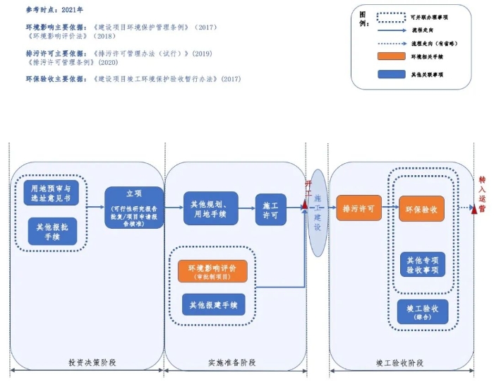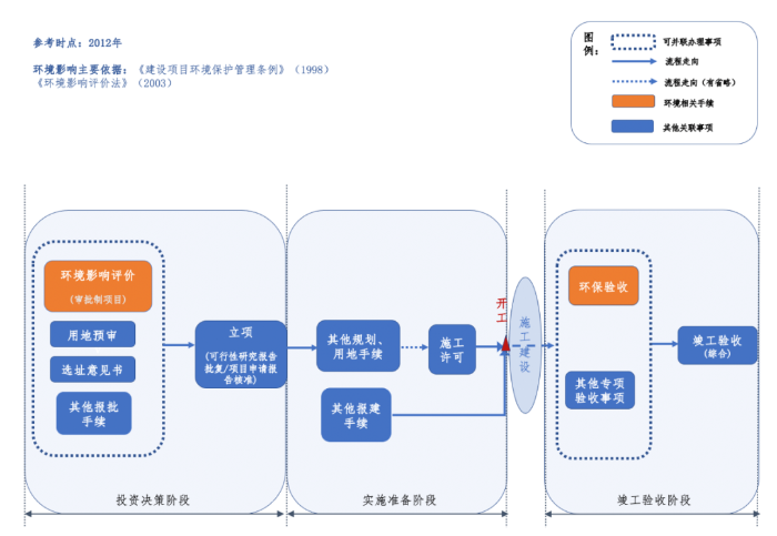 编者按 新中国成立以来,我国基础设施投资建设取得了举世瞩目的成就,是国家经济社会发展的重要支撑,为人民生活水平的提高做出了巨大贡献。改革开放以来,市场开始发挥配置资源的基础性作用,为我国基础设施的发展焕发了新的活力。据统计,我国基础设施资产总规模在1990年排在全世界约第15位,2000年上升到第7位,2010年跃升为第3位,至2018年已居世界首位。 党的二十大报告在回顾过去五年的工作和新时代十年的伟大变革中,充分肯定了基础设施在经济社会中发挥的重要作用,报告指出,我国“建成世界最大的高速铁路网、高速公路网,机场港口、水利、能源、信息等基础设施建设取得重大成就”。我国基础设施多年来大规模的投资建设和存量资产的高速积累,是党中央、国务院在建立社会主义市场经济体制背景下,关于投融资体制改革部署的重要成果。 项目前期工作手续的合规性要求,是基础设施能够发挥其应有价值的重要前提,也是投融资体制改革关注的重点内容之一。伴随着政府职能转变、深化“放管服”改革和扩大有效投资等重大决策的关键部署,我国工程建设项目审批制度不断优化和改革,基础设施项目投资前期决策管理经历了复杂的演变进程,其合规性标准也在与时俱进、不断完善。当前我国已进入基础设施存量时代,存量资产项目前期工作手续的合规性是重要的盘活条件之一,部分合规性问题已成为新时代社会广泛关注的焦点。本项专题研究立足投融资体制和项目审批制度变革的历史背景,尝试厘清基础设施项目在立项、土地、规划、环境、建设施工等方面主要前期工作的历史变革脉络,梳理不同管理事项之间的逻辑关联,从这一视角提供基础设施项目前期工作手续的合规性认识。本公众号将研究报告的部分成果以系列文章的形式陆续刊发,研究报告第一部分为背景与立项篇,第二部分为土地与规划篇,第三部分为建设施工篇,本文是研究报告的第四部分(环境篇),供业界同仁参考。 基础设施项目前期工作手续合规性研究(Ⅳ) 环境篇 张雪飞 伍迪 摘要:绿水青山就是金山银山,基础设施项目的建设可能会对环境产生影响,因此需要格外重视项目在环境保护方面的有关前期工作,具有代表性的手续事项主要包括环境影响评价、排污许可、环保专项验收等。建设项目环境影响评价,是对项目实施后可能造成的环境影响进行分析、预测和评估,提出预防或者减轻不良环境影响的对策和措施,进行跟踪监测的方法与制度。排污许可,是环境保护主管部门依排污单位的申请和承诺,通过发放排污许可证法律文书形式,依法依规规范和限制排污单位排污行为并明确环境管理要求,依据排污许可证对排污单位实施监管执法的环境管理制度。如果说环境影响评价制度是建设项目的环境准入门槛,那么排污许可制度是企事业单位生产运营期排污的法律依据。本文聚焦基础设施项目环境方面的手续,对手续主要内容和制度演进进行系统梳理,供业界参考。 关键词:基础设施;合规性;环境影响评价;排污许可;政策演进 当前我国基础设施项目在环境方面前期工作主要包括环境影响评价和排污许可等相关手续,此外,在工程项目的竣工验收阶段,还包括环保方面的专项验收等。 ——开展建设项目环境影响评价,自上世纪末《建设项目环境保护管理条例》开始施行以来就一直都是基础设施项目在环境方面前期手续的核心工作。环境影响评价是对规划和建设项目实施后可能造成的环境影响进行的分析、预测和评估,并提出预防或者减轻不良环境影响的对策和措施,进行跟踪监测。实行建设项目环境影响评价制度,最主要目的是为了防止建设项目产生新的污染、造成生态环境的破坏。 ——排污许可制度,从2016年11月开始施行,形成了与环境影响评价制度的有机衔接。如果说环境影响评价制度是建设项目的环境准入门槛,那么排污许可制度是企事业单位生产运营期排污的法律依据。为实现从污染预防到污染治理和排放控制的全过程监管,新建项目必须在发生实际排污行为之前申领排污许可证,环境影响评价文件及批复中与污染物排放相关的主要内容应当纳入排污许可证,其排污许可证执行情况应作为环境影响后评价的重要依据。 ——环保验收是基础设施项目竣工后,建设单位按照国务院环境保护行政主管部门规定的标准和程序,对配套建设的环境保护设施进行的专项验收。 一、环境影响评价 (一)内涵与适用范围 分类管理。根据建设项目对环境的影响程度,我国对建设项目的环境影响评价实行分类管理。建设单位应当按照不同标准组织编制不同形式的内容:可能造成重大环境影响的,应当编制环境影响报告书,对产生的环境影响进行全面评价;可能造成轻度环境影响的,应当编制环境影响报告表,对产生的环境影响进行分析或者专项评价;对环境影响很小、不需要进行环境影响评价的,应当填报环境影响登记表。建设项目的环境影响评价分类管理名录,由国务院生态环境主管部门(原国务院环境保护行政主管部门)制订并公布。最新修订且现行有效的《建设项目环境保护分类管理名录》由2020年11月30日生态环境部令第16号公布,自2021年1月1日起施行。 最新评价内容。环境影响评价主要以《中华人民共和国环境影响评价法》(以下简称《环境影响评价法》)和《建设项目环境