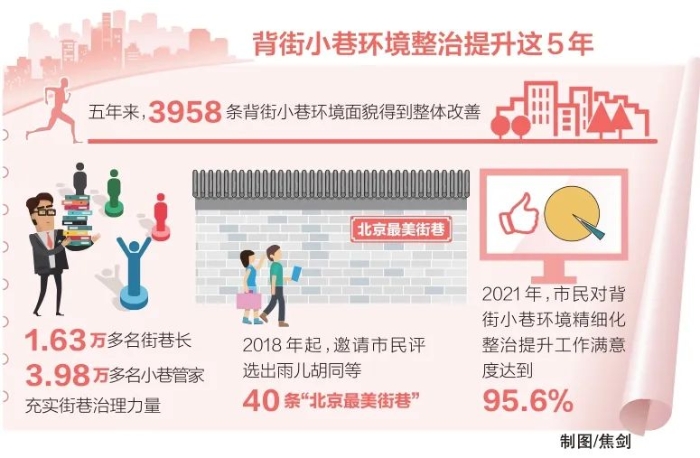 自然文化保护系列笔谈之北京老城保护与胡同更新 北京老城保护与胡同更新的 社会治理模式研究 张同升 郭建斌 洪辉 摘要:老城整体保护是北京历史文化名城保护的重点,胡同、四合院等是北京老城风貌和古都风韵的集中体现。通过街区胡同更新、合院杂院改造、建筑质量提升,在保护传承历史文化底蕴前提下改善人居环境,让老胡同的居民过上现代新生活,是老城保护与复兴的关键。本文梳理了近五年北京以背街小巷环境整治为主线的胡同更新改造提升行动及其成效,总结了北京基层党建引领、赋权赋能下沉、重视规划设计、共建共治共享等城市更新基层多元社会治理的经验做法,提出了加强重点领域法制保障、规划设计重视社区营造、推进胡同智慧应用场景建设等提高城市精细化治理效率的发展建议。 一、引言 北京历史文化名城保护需要处理好历史文化和现实生活、保护和利用的关系,做到城市保护和有机更新相衔接。习近平总书记2014年视察北京时强调“首都规划务必坚持以人为本,坚持可持续发展,坚持一切从实际出发,贯通历史现状未来,统筹人口资源环境,让历史文化与自然生态永续利用、与现代化建设交相辉映。”“北京是世界著名古都,丰富的历史文化遗产是一张金名片,传承保护好这份宝贵的历史文化遗产是首都的职责,要本着对历史负责、对人民负责的精神,传承历史文脉,处理好城市改造开发和历史文化遗产保护利用的关系,切实做到在保护中发展、在发展中保护。”[1]2019年2月1日,习近平总书记在前门东区草厂四条胡同考察调研时强调,要把老城区改造提升同保护历史遗迹、保存历史文脉统一起来,既要改善人居环境,又要保护历史文化底蕴,让历史文化和现代生活融为一体。老北京的一个显著特色就是胡同,要注意保留胡同特色,让城市留住记忆,让人们记住乡愁[2]。《北京城市总体规划(2016年-2035年)》明确提出要把承载着深厚文化底蕴的老城整体保护好,“老城不能再拆了”。要扩大历史文化街区保护范围,保护好胡同、四合院、名人故居,修复历史肌理。《首都功能核心区控制性详细规划(街区层面)(2018-2035年)》提出以街区为单位,采取历史保护、保留提升、更新改造的方式,按照街区、地块、建筑三个层次,推动街区可持续保护更新。北京胡同绵延数百年,是古都风貌的重要组成部分。背街小巷是城市的毛细血管,主导着城市的微循环。通过街区胡同更新、合院杂院改造、建筑质量提升,在保护传承历史文化底蕴前提下改善人居环境,让老胡同的居民过上现代新生活,是老城保护与复兴的关键。近几年来,北京以背街小巷整治为抓手,将其与北京非首都功能“疏解整治促提升”、老旧小区综合整治结合起来,通过自上而下和自下而上的制度创新和机制创新,在历史文化保护和基层社会治理方面做了大量有益的实践探索。本文将梳理北京近五年以背街小巷环境整治为主线的胡同更新改造提升行动及其成效,总结城市更新基层多元社会治理的经验做法,提出北京街区胡同保护更新治理的发展建议。 二、北京胡同更新行动及成效 背街小巷,是指城市主要街道后面的小巷、弄堂、胡同等生活空间。背街小巷是城市病集中的地方,是城市管理的薄弱环节。北京的很多老胡同公共服务设施很不完善,环境卫生状况差,四合院内私搭乱建、拥挤杂乱、通道狭窄,建筑老化、房屋质量差。为改善胡同居民环境,提升城市生活品质,2017年3月,时任北京市市长蔡奇同志在察访东城区和西城区背街小巷环境整治时提出建立“街长”“巷长”制,把责任落实到街道、社区,创建一批示范街面、精品胡同[3]。2017年4月,北京市制定印发了《首都核心区背街小巷环境整治提升三年(2017-2019年)行动方案》,要求对首都核心区2435条背街小巷进行环境整治,“抓创建、治顽症、促提升”,更好地保护古都风貌,留住北京城市的“魂”,做到“十有十无一创建”:环卫作业有队伍、交通停车有规范、街巷立面有管护、公服设施有维护、绿化美化有养护、街容巷貌有巡查、违法行为有查处、居民群众有自治、督导检查有力度、示范引领有标杆;无私搭乱建、无开墙打洞、无乱停车、无乱占道、无乱搭架空线、无外立面破损、无违规广告牌匾、无道路破损、无违规经营、无堆物堆料;创建文明街巷。从2017年起,三年间全市共对3000余条背街小巷进行了环境改造。2020年北京启动新一轮“背街小巷环境精细化整治提升三年行动计划”,紧紧围绕居民“幼有所育、学有所教、劳有所得、病有所医、老有所养、住有所居、弱有所扶”“便利性、宜居性、多样性、公正性、安全性”“七有”“五性”需求,在达到“十无”标准基础上实现“五好”标准(公共环境好、社会秩序好、道德风尚好、同创共建好、宣传氛围好),覆盖了全市16个区,计划到2022年年底前,全市完成3261条达标类、精治类背街小巷环境精细化整治提升任务,同时做好1026条维护类背街小巷环境的日常管护[4]。 五年来,北京全市3958条背街小巷环境面貌得到整体改善;1.63万多名街巷长、3.98万多名小巷管家充实街巷治理力量;自2018年起,邀请市民评选出了雨儿胡同、府学胡同、鹞儿胡同、韶九胡同等40条“北京最美街巷”[5];首都文明办、北京市城市管理委、北京市规划和自然资源委命名了施家胡同、模式口南小街、