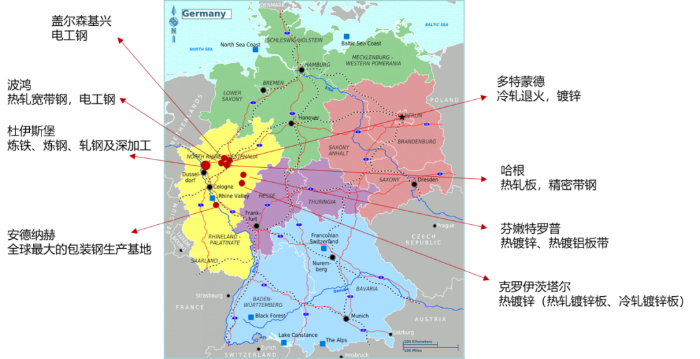 德国钢铁工业发展经验及启示 李延辉 摘要:德国是全球钢铁工业强国,粗钢年产量基本在4000万吨,构筑了德国汽车及配件、机械装备、建筑工程等行业的基础。蒂森克虏伯、萨尔茨吉特、迪林根、萨尔、巴登、克洛克纳等是德国最具代表性的钢铁企业。研究德国钢铁企业在流程调整、资源整合、联合重组、优化布局、转型发展等方面的先进经验,对我国钢铁工业的发展具有重要借鉴意义。 关键词:德国;钢铁;联合重组;转型发展 德国是传统的钢铁工业强国,在全球钢铁行业占有重要地位。自20世纪70年代以来,德国粗钢年产量基本在4000万吨左右,始终保持着较强的国际竞争力。德国钢铁企业结合自身特点,为适应外部环境变化、应对激烈的国际竞争,不断调整发展策略,在生产布局、联合重组、合资合作、服务延伸等方面具有鲜明的特色,总结其发展经验,对我国钢铁企业的高质量发展具有重要参考价值。 一、德国钢铁工业发展现状 德国是世界最重要的产钢国之一,钢铁工业发展水平始终位居全球前列。钢铁工业是德国制造业的基础,不仅构筑了德国汽车及配件、机械装备、建筑工程等行业的基础,而且是德国外贸出口比重较大的优势产业,在其现代国民经济体系中占有重要地位。 (一)产业规模 德国是欧盟最大的产钢国,粗钢年产量长期保持在4000万吨左右,约占欧盟总产量的1/4,位居全球第7位,钢铁工业年销售额约400亿欧元。受疫情影响,2020年粗钢产量降至3570万吨,销售额降至321亿欧元,均为2009年以来的最低值,2021年粗钢产量恢复至4010万吨。根据德国钢铁联合会统计,德国钢铁行业直接就业68万人,上下游关联行业就业超过400万人,占德国制造业总就业岗位的近2/3。 数据来源:德国钢铁联合会。 德国粗钢产量情况 (二)进出口 德国既是钢铁出口大国,也是进口大国,钢铁产品进口量和出口量基本相当。钢铁产品出口量占德国钢铁总产量的50%以上。2021年,德国钢铁产品出口量约2390万吨,占产量的59.6%;进口量约2330万吨。欧盟内国家是德国主要的钢铁贸易方,出口量约占总出口量的75%,进口量约占总进口量的85%。 数据来源:世界钢铁协会。 德国钢铁产品进出口情况 (三)工艺结构 从20世纪70年代起,德国部分钢铁企业将原有高炉-转炉长流程工艺改为电弧炉短流程工艺,以满足城市发展、环境保护、原料变化等方面的需要。至21世纪初,德国钢铁工业工艺结构调整基本结束,最近20年变化不大。整体上看,德国钢铁工业虽然已形成两种工艺并行发展的局面,但传统长流程企业仍保持着较大的规模优势,长流程工艺粗钢产量占总产量的70%左右。 数据来源:世界钢铁协会。 德国钢铁工业炼钢生产工艺结构 (四)生产布局 历史上,依托当地丰富的煤炭和法国洛林地区的铁矿资源,鲁尔区成为德国钢铁生产最集中的区域。从20世纪60年代起,鲁尔区煤钢产业经历了数十年的转型,企业数量大幅减少,钢铁产量也有所下降,但该地区的杜伊斯堡市仍是德国最重要的钢铁生产基地,粗钢产量占德国总产量的1/3。萨尔茨吉特地区是德国传统钢铁生产重镇,是萨尔茨吉特钢铁万搏网站总部所在地,粗钢年产量500万吨以上。 德国钢铁冶炼企业布局 (五)原燃料供应 德国钢铁工业的发展离不开国内铁矿石、煤炭等资源的支撑。20世纪60年代以来,伴随着以鲁尔区为代表的传统资源地区的转型发展,德国钢铁工业所需铁矿石、焦煤等主要原燃料转向以进口为主,目前德国铁矿石完全依赖进口,约95%的炼焦煤依赖进口。作为制造业强国,德国废钢年回收量较高,已成为废钢净出口国。 (六)物流运输 德国钢铁工业年社会运输量1.5亿吨左右。作为传统优势行业,钢铁工业在德国拥有较高的地位,主要钢铁企业都建立了自己的铁路运输网络,并通过对铁路万搏网站、拖船运输万搏网站、港口万搏网站等物流服务关键领域开展的长期投资,建立了可持续的物流运输体系。目前,钢铁行业厂外运输中,铁路运输占50%左右,内河水运占30%左右,其余为公路运输。 (七)下游消费 2021年,德国钢材表观消费量约3520万吨,建筑行业、汽车工业、金属制品、机械工业是钢铁消费量最多的领域,分别占钢材消费量的35%、26%、12%、11%。 德国钢铁产品消费领域 二、德国主要钢铁企业发展概况 德国钢铁行业有各类企业近百家,具有冶炼生产能力的十余家,最具代表性的企业主要有蒂森克虏伯集团、萨尔茨吉特集团、迪林根钢铁集团、萨尔钢铁集团、巴登钢铁集团及克洛克纳集团。 (一)蒂森克虏伯集团 蒂森克虏伯集团(thyssenkrupp)是德国最大的工业集团之一,由蒂森和克虏伯合并而成[1]。 蒂森成立于1865年,初期主要生产用于制管、包装等领域的金属材料。从20世纪50年代中期开始涉足钢铁贸易领域,并向多元化材料服务商转型。1973年,通过收购涉足机车、造船、工程等工业品制造及工程服务等领域。至20世纪90年代中期,蒂森业务已涵盖材料贸易、工业品制造、工厂及设备服务、项目管理等领域。 克虏伯成立于1811年,早期业务以冶炼铸造、军工装备制造为主,曾是德国最大的军火供应商。在20世纪70年代进军工程技术服务、机械制造领域。至1992年,已初步形成工程技术、组件制造、材料贸易服务的多元化业务结构。 1999年,蒂森与克虏伯合并后,成立了蒂森克虏伯。蒂森克虏伯拥有钢铁欧洲、钢铁美洲、材料服务、组件技术、电梯、工厂