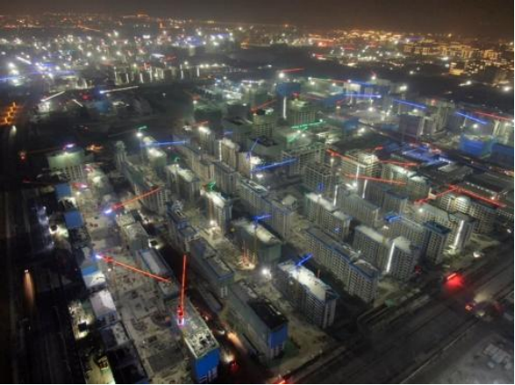 项目区位图 为确保百姓按期入住,项目组树牢“今日再晚也是早,明日再早也是晚”的效率意识,全员驻场办公,与业主同吃同住,协调设计单位同步开展工作,全力打响“5+2”“白加黑”攻坚战。经现场勘察及多次座谈研讨,项目组不仅完成市场预测、地价测算、运营财务分析等研究工作,更创新性打造“购买+补助+自行运营”建设模式,同时协助业主签署土地购买协议、政府购买协议等文件,获得委托方高度认可。 雄安安置房——夜幕下的灯火通明