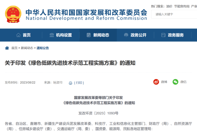 绿色低碳先进技术的研发、推广和应用是推动如期实现碳达峰碳中和目标的关键一环。在习近平总书记提出碳达峰碳中和目标三周年即将来临之际,国家发展改革委等十部门联合印发《绿色低碳先进技术示范工程实施方案》(发改环资〔2023〕1093号,以下简称《方案》),明确提出了绿色低碳先进技术示范工程重点方向、保障措施、组织实施方式等,指向清晰、措施有力、操作性强,对推进经济社会发展全面绿色低碳转型,加快绿色低碳技术产业化进程具有十分重要的意义。 01 开展技术示范工程建设是加速绿色低碳转型的有力举措 自碳达峰碳中和目标提出以来,我国将应对气候变化作为国家战略,纳入生态文明建设整体布局和经济社会发展全局,建立碳达峰碳中和“1+N”政策体系,已构建起目标明确、分工合理、措施有力、衔接有序的碳达峰碳中和政策框架。各地区各部门、各行业各企业围绕碳达峰碳中和目标,落实政策措施,在能源、产业、交通、建筑等重点领域,有力有序有效推进各项重点工作,绿色低碳转型取得的成效举世瞩目。同时,随着绿色低碳转型的深入推进,协同处理好降碳、减污、扩绿、增长的要求更加迫切,亟需向科技和市场要答案、寻方法、找出路。 技术的跨越式发展是实现绿色低碳转型的必要条件。从我国的发展阶段看,总体仍处于工业化、城镇化中期,经济发展与能源消耗、碳排放存在强耦合关系,要兼顾经济社会可持续发展与碳中和目标实现,实现高质量发展和高水平保护,必须依靠科技创新。例如在能源领域,既要加快低碳零碳能源生产技术的迭代,支持化石能源清洁高效开发利用,还要着力培育先进电网、高效率储能、氢能等产业发展;在工业领域,既要在钢铁、建材、有色、石化等重点行业应用先进技术实行节能降碳改造,还要有序发展清洁燃料(原料)与过程替代技术、碳捕集利用和封存等负排放技术等;在建筑领域,要推广光伏建筑一体化以及其他超低能耗建筑、近零能耗建筑技术;在交通领域,既要注重低碳(近零碳)机场、港口码头、港区等交通枢纽的建设,也要发展绿色低碳的车辆、船舶、航空器等。在系统减排方面,要瞄准城市、园区中的具体应用场景,大力发展能量系统优化、资源循环型耦合技术等。这些技术相辅相成、互为补充,共同支撑绿色低碳转型目标的实现。 绿色低碳技术是全球新一轮科技竞争的主要赛道。近年来,全球科技创新进入空前密集活跃的时期,新一轮科技革命和产业变革正在重构全球创新版图、重塑全球经济结构。绿色低碳领域的科技创新成果,正以前所未有的力度影响国际贸易和地缘政治经济格局。全球许多经济体通过直接补贴、优惠贷款等产业政策扶持本国绿色低碳产业发展。绿色低碳技术创新与人工智能、5G、量子信息科学、半导体、生物技术等一道,成为全球新一轮工业革命和科技竞争的重要新兴领域,谁抢占了绿色技术创新的先机,谁就占据了未来竞争的制高点。实践多次证明,关键核心技术是要不来、买不来、讨不来的,特别是在绿色低碳发展这一领域,只有实现技术产业化的全面提速,把技术和供应链的主动权握在自己手中,才能在绿色技术创新革命中走在世界前列。 通过示范工程加速技术产业化是经过实践验证的有效工具。科技成果转化的过程,本质就是产业升级和经济提升的过程。特别是重大颠覆性技术对已有传统或主流的技术、产品进行新的替代,往往会引发新兴产业快速崛起,对传统产业产生“归零效应”,并对人类生活、工业生产、商业消费模式带来革命性变化。美国、欧洲、日本等均对重点技术的产业化进行长远布局和前瞻部署,确立研发战略,确定重点项目,提供资金支持。我国在半导体照明、北斗导航系统、高速铁路等领域的成功实践也表明,通过示范工程推广新型技术、加速技术升级迭代具有重要意义。一项新兴技术特别是颠覆性技术问世时,往往面临“最难的第一步”,在资金、技术、要素保障、市场认可度等方面均面临极大的挑战,迫切需要“扶上马、送一程”。通过组织实施绿色低碳先进技术示范工程,可以大幅提高绿色低碳先进技术在市场中的接受程度和抗风险能力,全面加速技术产业化进程,培育形成新的绿色低碳经济增长点。 02 聚焦重点,精准支持先进技术示范工程建设 绿色低碳技术创新涉及面广、头绪众多,如何把握关键、找准重点,从而以点带面形成突破,十分考验政策设计者谋篇布局的能力。《方案》明确提出了两个筛选项目的原则:从领域上讲,聚焦能源、工业、建筑、交通等重点领域,全链条推进源头减碳、过程降碳、末端固碳先进适用技术示范应用;从创新链上讲,以技术基本成熟但尚未商业化推广的先进适用技术为重点,加快科技成果转化和产业化推广。从这两个原则出发,《方案》详细列明了当前及今后一段时间重点项目的支持方向。一是源头减碳类。源头减碳类主要集中在能源生产领域,侧重于通过能源供应的绿色低碳转型实现经济社会的全面降碳。其中既包括高效光伏组件、大容量太阳能热发电、高效大容量风电、浅层地热能供冷供热利用等非化石能源先进示范项目,也支持清洁高效煤电与新能源发电综合调节、煤电快速启停及深度调峰、低碳(近零碳)油气田示范等化石能源清洁高效开发利用示范项目,还有与下一阶段能
