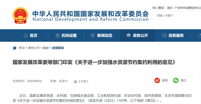 落实全面节约 坚持四水四定 进一步加强水资源节约集约利用 ——《关于进一步加强水资源节约集约利用的意见》专家解读 加强水资源节约集约利用,推动全过程、全领域、全社会节水,是深入贯彻习近平生态文明思想、实施全面节约战略的重要举措,是缓解我国水资源供需矛盾、保障水安全的必然选择。近日,国家发展改革委、水利部、住房城乡建设部、工业和信息化部、农业农村部、自然资源部、生态环境部等部门联合印发《关于进一步加强水资源节约集约利用的意见》(发改环资〔2023〕1193号,以下简称《意见》),强化“四水四定”,对推进水资源总量管理、科学配置、全面节约、循环利用,深入实施国家节水行动作出了新的部署,凸显以下四大亮点。 01. 强调配取用排节水,强化全过程水资源节约 《意见》提出,在配置阶段,加强用水总量和强度双控,加快开展跨行政区江河流域水量分配,坚持先节水后调水,把节水作为受水区的根本出路;在取水阶段,严格建设项目水资源论证,依法审批取水许可,整治违法取水问题;在用水阶段,健全用水定额体系,做好用水定额动态评估和更新,落实计划用水,提高各领域用水效率;在回用阶段,推行非常规水源纳入水资源统一配置,缺水城市积极拓展再生水利用领域和规模,具备条件的地方充分利用海水、矿井水、雨水等非常规水源。水资源节约集约利用工作贯穿全生命周期,涵盖了资源配置阶段的科学性、利用过程的先进性以及回用环节的可行性,旨在推行全过程管理和全链条节约。 02. 创新性提出生态景观节水,强化全领域水资源节约 近年来,我国用水结构不断优化,生态用水在用水总量中占比逐年增加,目前已超过居民生活用水的一半,因此生态景观节水的重要性不可忽视。此外,随着城市建设步伐的加快,城市景观绿化面积迅速扩大,不恰当的绿化植被和人工水景消耗了大量的水资源。《意见》将生态景观节水与农业农村、工业、城镇三大传统用水领域并列,补上了全领域节水的最后一块拼图,提出要坚持以水定绿,坚持山水林田湖草沙一体化保护和系统治理,统筹推进水源涵养、国土绿化、防沙治沙、湿地修复、水土保持;严控景观用水,严禁违背自然规律挖湖造景,限制盲目扩大景观和娱乐场地的水域面积,黄河流域严控新建亲水公园。 03. 关注节水产业,明确节水增效双提升新抓手 发展节水产业经济新业态,协调推进“产业节水”与“节水产业”协同发展,是推动水资源高效利用与产业质量效益共同提升的有力抓手。我国一直把发展节水产业放在重要位置,《国家节水行动方案》中多次强调加快成果转化和产业培育,《意见》专门成章并提出细化措施支持节水产业发展壮大,如加强技术研发应用,支持举办节水创新发展大会及高新技术成果展,推进技术产业化;推广节水产品,实施水效标识,推行绿色产品政府采购,依法打击水效虚标,推进节水信息化管理;推动节水服务产业发展,积极开展用水权交易,落实交易收益分配制度,在公共机构、高耗水行业、供水管网漏损控制等领域推广合同节水管理。 04. 突出问题导向,聚焦短板弱项破解难点堵点 《意见》秉持问题导向,聚焦亟待解决的难点堵点,紧盯细分领域、重点区域和短板弱项,有针对性地提出了应对举措。如我国在农业节水方面已有高效节水灌溉技术、农田水利工程等有力措施,但农业用水计量与监测设施建设仍是薄弱环节,《意见》提出,5万亩以上大中型灌区渠首取水口要实现在线计量,大中型灌区应在产权分界点安装计量设施,高标准农田和高效节水灌溉项目要配套实用易行的计量设施,进一步细化计量单元。又如,公共机构是用水大户,也是节水示范引领的重要载体,近来会议场所“半瓶水”浪费现象备受关注,《意见》对此提出,公共机构率先垂范,提高公共机构用水计量信息化水平,在机关、学校、医院等重点领域实施水效领跑者引领行动,深入推进节水型高校建设,倡导减少瓶装饮用水浪费。 《意见》在全面节约战略下,为进一步推进水资源节约集约利用深化了方向,细化了重点,实化了措施。下一步建议以《意见》为引领,各地区各部门形成工作合力统筹推进,加快落实,强化政策资金保障,以水资源可持续利用支撑我国实现高质量发展。 注:原文载自国家发展改革委微信客户端 | |||||