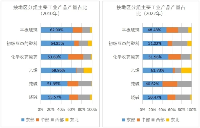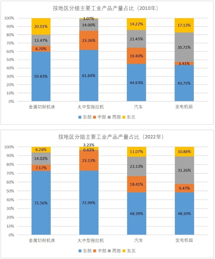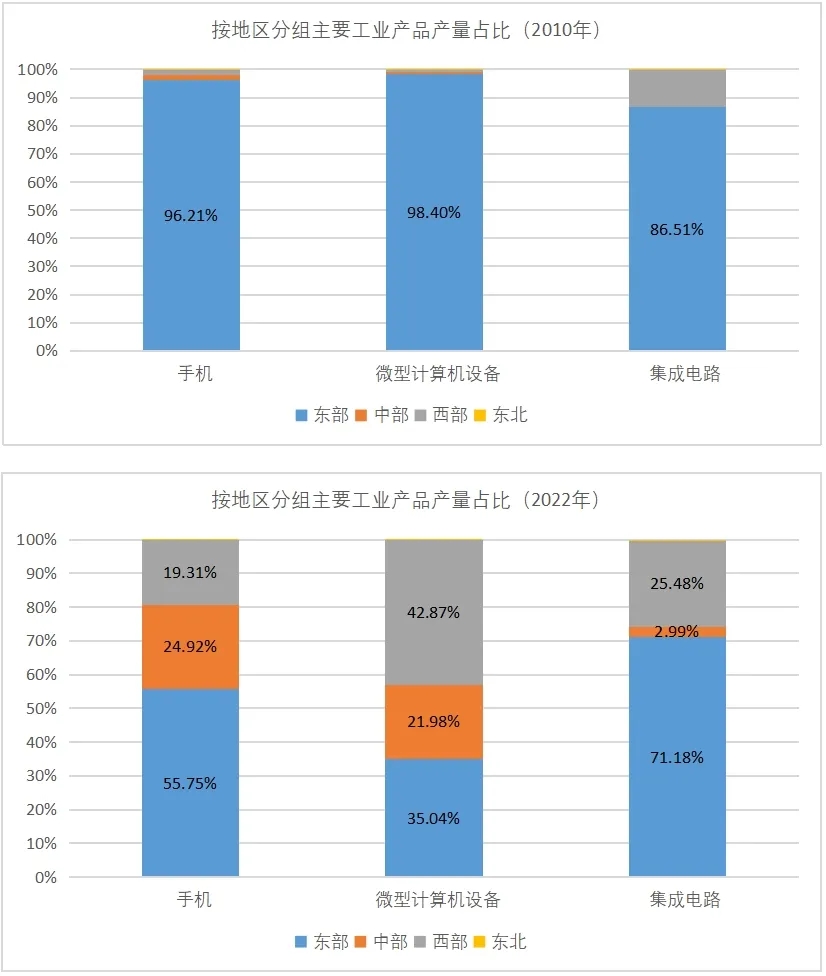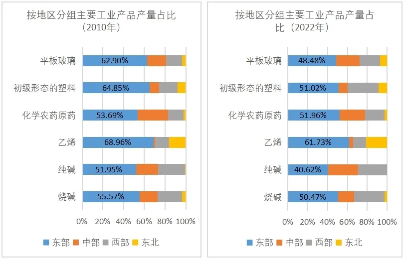 新形势下我国高质量推动产业转移 和优化生产力布局的几点思考 车璐 产业转移关系着我国重大生产力布局和产业链、供应链安全稳定。当前,我国制造业面临发达国家寻求产业链“去中国化”和发展中国家产业发展体系逐步完善的“双向挤压”。高质量推动产业转移,更有针对性地引导生产要素合理流动和优化配置,对优化我国生产力空间布局、促进区域协调发展具有重要意义,也是保持我国产业链供应链安全稳定、建设现代化产业体系和构建新发展格局的迫切需要。 一、我国区域间产业转移呈现的新趋势 我国经济发展的空间不均衡引发了国内不同区域间的产业转移,这种区际产业转移既是区域间要素禀赋动态变化的体现,也是促进欠发达地区发展的重要路径。近年来,国内产业转移层级稳步提升,从劳动密集型产业的单向转移,逐渐呈现出综合转移、双向转移等新趋势。 (一)中西部地区承接传统产业转移和产业升级并行 我国产业转移的结构不断升级,中西部地区除主要承接东部地区调整优化的劳动密集型产业外,还积极利用产业基础和资源禀赋优势,加大电子信息等资本密集型和技术密集型产业承接力度,整体呈现出产业转移与产业升级并行趋势。近年来,战略性新兴产业也开始向中西部核心城市集聚,如合肥芯片产业、武汉光纤通信产业、西安半导体产业、重庆新能源汽车产业等。2010-2022年,我国东部地区手机、微型计算机、集成电路等主要工业产品产量占全国比重分别下降40、63和15个百分点;而中部地区三种产品占比分别上升23、21和3个百分点,西部地区三种产品占比分别上升18、42和12个百分点。 数据来源:根据《中国统计年鉴》《中国工业统计年鉴》相关数据整理计算。 图1 2010-2022年我国分区域电子信息类主要产品产量占比 (二)资源环境要素成为东部地区产业转移重要考量 随着城市化的不断推进和经济的快速发展,东部地区能源、土地、环境等要素供给日趋紧张,碳排放的限制也会加快部分高耗能产业向原材料丰富、新能源富集的中西部地区疏散转移。近年来,全国电解铝“北铝南移、东铝西移”,云南依托可再生能源资源优势主动承接电解铝产能转移,全省电解铝产能接近全国的五分之一。全国实施“东数西算”工程,8个国家算力枢纽节点西部地区占据5个,10个国家数据中心集群西部地区占据7个。此外,玻璃、塑料及化工产品产业,受东部地区环境容量和环境监管限制而向中西部地区转移。2010-2022年,东部地区平板玻璃、初级形态的塑料、化学农药原药、乙烯、纯碱、烧碱等主要工业产品产量占全国比重分别下降14、14、2、7、11和5个百分点,而西部地区占比分别上升5、13、4、0.2、3和7个百分点。 数据来源:根据《中国统计年鉴》《中国工业统计年鉴》相关数据整理计算。 图2 2010-2022年我国分区域原材料类主要产品产量占比 (三)东中西及东北地区产业双向转移和区域间合作 随着我国基础设施建设大发展,中西部交通运输条件与东部的差距在不断缩小,特别是互联网、移动通信等新型基础设施的发展,使得企业可以在不同地区通过远程办公、在线会议等进行业务协作和管理,“远程研发+异地中试+异地生产+异地操作”等模式应运而生。以汽车产业为例,国内知名车企相继进入中西部,在重庆、成都、武汉、长沙、郑州等地建成了相当规模的整车和零部件生产基地,但其研发中心依然设置在东部沿海发达地区。同时,中西部和东北地区也可以通过在东部地区设立研发基地,快速获取发达地区人才、区位、资金优势。此外,东北和西部地区部分传统优势产业出现向东部地区转出的现象。2010-2022年,东北地区金属切削机床、汽车和发电机组等主要工业产品产量占全国比重分别下降14、3和6个百分点,西部地区大中型拖拉机占比下降13个百分点;而同期东部地区金属切削机床、大中型拖拉机、汽车和发电机组等主要工业产品产量占比分别上升13、11、3和5个百分点。 数据来源:根据《中国统计年鉴》《中国工业统计年鉴》相关数据整理计算。 图3 2010-2022年我国分区域装备制造类主要产品产量占比 二、我国区域间产业转移面临的新挑战 尽管我国不断推进产业有序转移、优化生产力空间布局、推动区域协调发展,但在国内生产要素成本上升和产业转型升级需求的推动下,叠加全球经济、地缘政治等外部因素,我国区域间产业转移正面临诸多挑战。 (一)全球产业链供应链重构加速我国制造业外迁 随着国际政治经济秩序深刻调整,各国围绕产业链供应链全球化与区域化、多元化与本土化、脱钩与反脱钩等展开激烈博弈,全球产业转移的步伐加速。近年来,美国与其盟友加速推进“友岸外包”策略,将东盟、东亚和南亚国家打造成其产业链供应链转移的重点区域。同时,随着劳动力、资源和环境成本的增加,我国东部地区制造业的传统优势受到挑战,劳动密集型产业加速向南亚、东南亚转移,部分产业形成上下游企业“抱团出走”的链条式外迁模式,对我国产业链供应链的安全稳定带来风险。2019-2023年,外商对华投资占全球比重下降最快的行业中,电子元件下降75.72%、半导体下降93.44%、汽车设备制造下降74.78%;同期,我国对外投资占全球比重增长最快的行业中,汽车设备制造增长近3倍、化学品和矿产品增长2.4倍、电子元件增长1.2倍。 (二)东部地区受