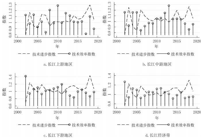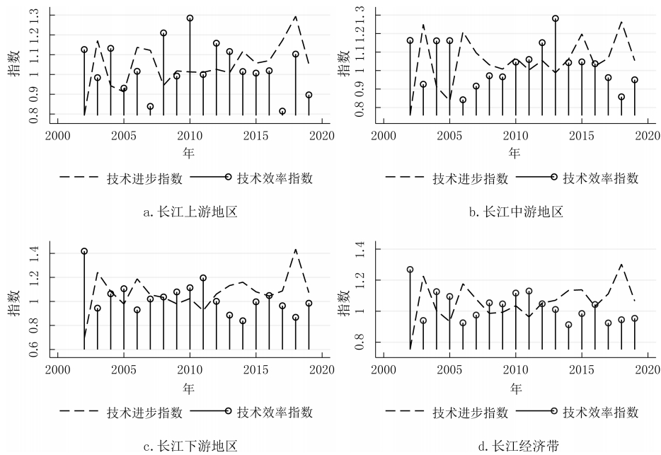 摘要:正确认识和研判长江经济带科技创新效率的变化特征有助于更好地发挥科技创新对经济高质量发展的支撑作用。基于2002-2019年长江经济带沿线11省份的面板数据,利用GS-SBM模型测度了长江经济带的科技创新效率,分别使用Malmquist指数、Dagum基尼系数以及 Sigma收敛、Beta绝对(条件)收敛考察了长江经济带科技创新效率的演变、空间差距和收敛性。研究发现:长江经济带及其上、中、下游地区科技创新效率整体上而言保持提升趋势,且存在较大空间差距,超变密度对总体差距的贡献最大;长江经济带及其上、中、下游地区科技创新效率几乎不存在Sigma收敛和Beta绝对(条件)收敛;长江经济带发展战略实施之后,科技创新效率提高得更加明显,并从技术进步与技术效率的双重驱动转变为更多地依靠技术进步,科技创新效率的扩散状态更强。基于此,研究认为要科学辩证地看待区域科技创新效率的差距,发挥长江经济带发展战略和科教兴国战略在提升和平衡科技创新效率中的积极作用。 关键词:长江经济带;科技创新效率;时空格局;收敛性 科技创新是长江经济带建设现代经济体系、实现高质量发展的战略支撑,是推动中国式现代化的第一力量。经过多年的对外开放,长江经济带已经融入了全球分工体系,但是大量本土企业被锁定在产业链或者产品价值链的中低端,必须依靠科技创新才能实现在全球价值链上的攀升。同时,虽然长江经济带是我国重要的现代工业集聚地,工业基础扎实、规模庞大,但是关键核心技术仍然缺乏,尤其是在以美国为首的西方国家对华遏制和挑战的情况下,需要以科技创新来解决“卡脖子”问题,加快实现高水平科技自立自强。此外,为了加快经济增长,长江经济带沿线多个省市推进工业化和城镇化,忽略了人与自然的和谐共生,导致长江沿线部分地区环境污染问题突出,生态功能退化,碳排放持续增加。基于此,无论是贯彻落实习近平总书记“共抓大保护、不搞大开发”的指示精神,还是如期或者率先实现碳达峰碳中和目标,都要求长江经济带沿线省市转变发展模式,走生态优先、绿色低碳发展之路,发挥科技创新在经济绿色转型中的支撑作用。 由于科技创新本质上来讲是一种知识生产过程,所以就存在科技创新成果的产出与科技创新资源和要素的投入比问题,即科技创新效率的高低,这种高低变化分别反映在时间和空间上差距:一是在某一区域内科技创新资源和要素投入的持续增长,并没有带来相应的科技创新产出数量增长或者质量的提升;二是将同样的科技创新资源和要素投入到不同区域,其科技创新产出数量或者质量显著不同。这两个维度分别刻画了区域内与区域间科技创新效率的差别,不仅影响了科技创新资源和要素的配置,而且也影响了科技创新对经济发展的贡献程度,成为区域发展不平衡的底层因素之一,给区域协调发展带来了较大的挑战。除此之外,我国依然是世界上最大的发展中国家,科技创新资源较欧美发达国家而言则相对稀缺,这就需要通过提高科技创新效率来实现科技创新资源的最大化利用。 为了更加充分和有效地利用长江经济带科技创新资源,促进长江经济带经济高质量发展,就必须正视科技创新效率在时间和空间上的演变,科学认识科技创新效率向高水平收敛的机制,因此,不仅要考察长江经济带科技创新效率的动态变化规律,还需要充分考虑科技创新效率的区域不平衡问题,即其上、中、下游地区之间以及各自内部科技创新效率的差距变化。本文首先基于数据包络方法测度了长江经济带及其上、中、下游地区的科技创新效率,分解了导致科技创新效率变化的驱动因素,然后利用dagum基尼系数考察了长江经济带及其上、中、下游地区的科技创新效率的空间差距及其形成来源,接着分别采用Sigma收敛和Bate收敛来检验了长江经济带及其上、中、下游地区的科技创新效率的收敛性,最后给出了相关对策启示。 一、文献综述 多年来,我国一直高度重视科技创新在国民经济发展中的重要作用,将推动科技创新做为党治国理政的核心内容之一。在中国共产党第二十次全国代表大会报告提出“必须坚持科技是第一生产力、人才是第一资源、创新是第一动力”。鉴于此,有学者围绕我国科技创新问题从多个角度展开了研究,取得了一批较高质量的成果。这里针对本文的研究目的,主要对科技创新效率方面的相关研究进行了综述。 从现有研究看,针对科技创新效率的测度方法主要是随机前沿模型(SFA)和数据包络分析(DEA)。由于SFA 模型属于参数方式,所以在使用它测度科技创新效率时不仅要事先明确投入变量与产出变量之间的函数关系,而且对变量的平稳性和变量之间的协整关系要求较高。DEA方法采用线性规划技术测算效率,除了不需要事先确定生产函数的形式,还能够完成多投入多产出情形下的科技效率测度,实现不同样本点与效率最优点之间的比较,因此被广泛地采用。譬如,刘爱芹等[1] 、孙凯[2] 、李婧等[3] 、李南等[4] 、李政等[5]利用传统的径向DEA模型对不同区域的创新效率进行了测算,但传统径向DEA模型存在松弛变量、跨期比较和有效率决策单元效率比较等诸多问题,影响了效率测度结果的可靠性,从而推动了新拓展的DEA方法在测度科技创新效率上的应用。其中,王春枝等[6]利用非径向超效率DEA模型测度了我国区域创新效率的动