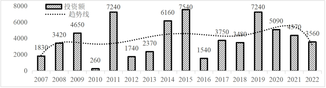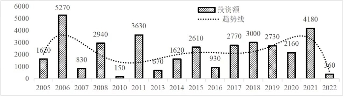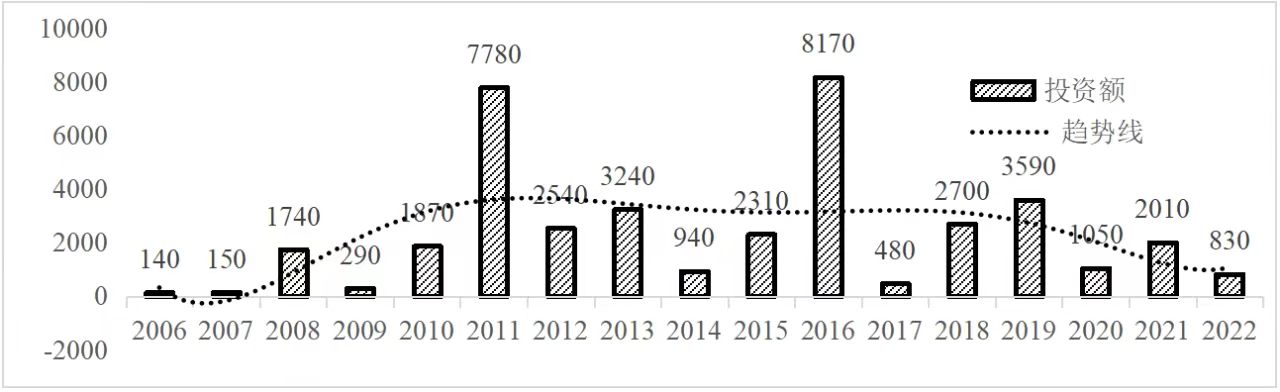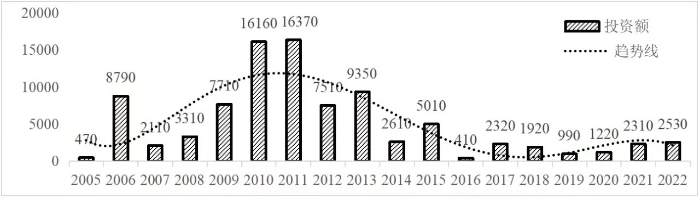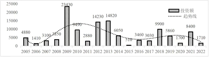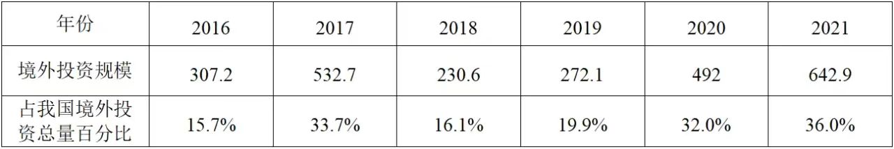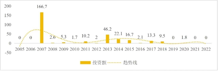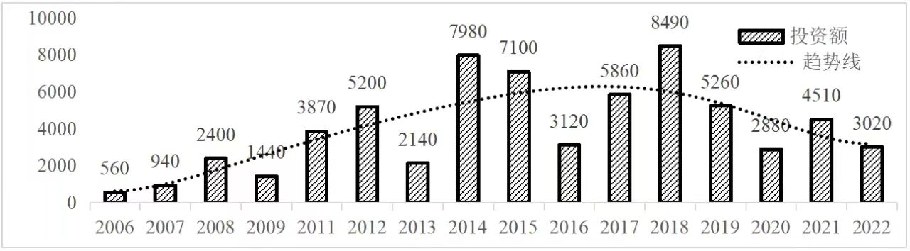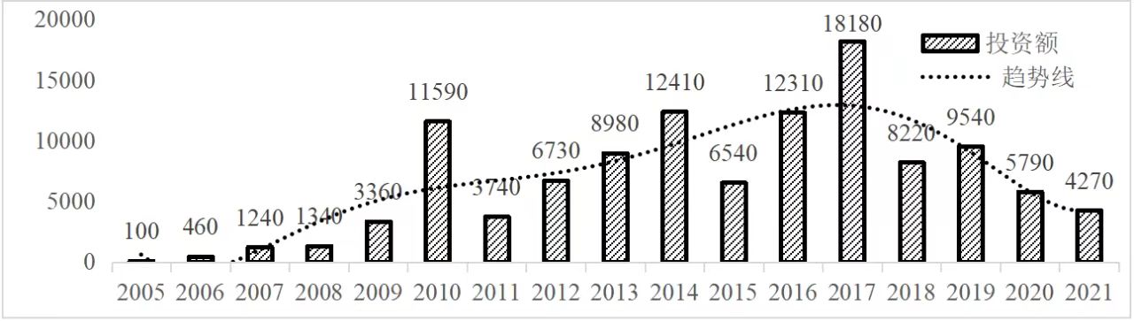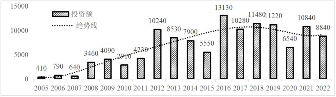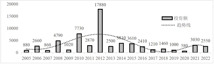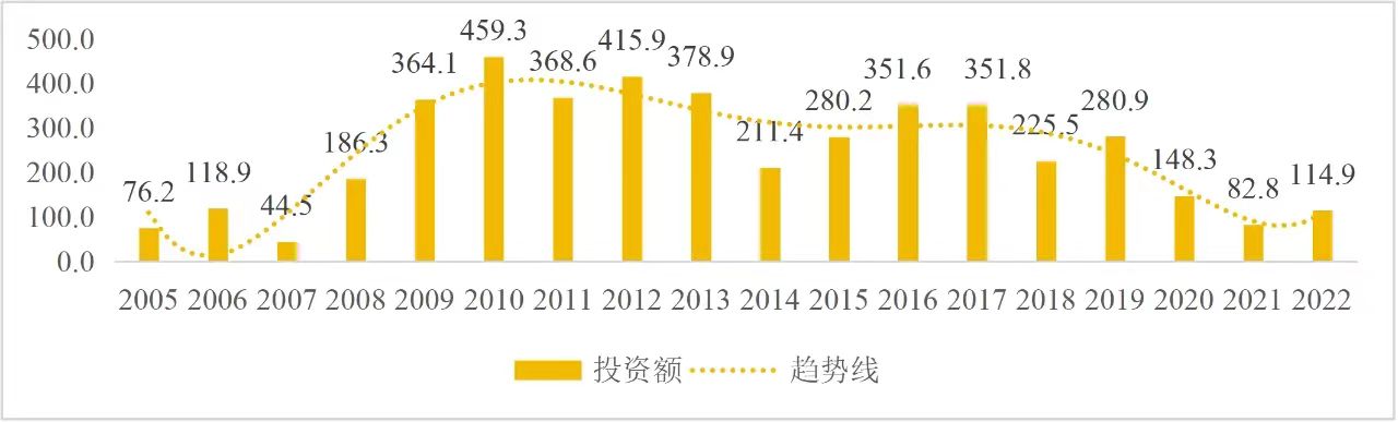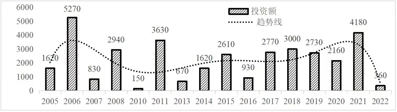 企业境外投资研究之二: 中央企业境外投资情况 杨凯越 编者按:根据商务部2023年10月发布的我国对外直接投资统计数据,截至2022年,我国对外直接投资存量达27548.1亿美元,当年对外直接投资规模达1631.2亿美元,居世界第二位。截至2022年底,中国2.9万家境内投资者共设立境外企业4.66万家,分布在全球190个国家(地区),年末境外企业资产总额8.4万亿美元。随着“双循环”战略、“走出去”战略和“一带一路”倡议的深入推进实施,对企业境外投资开展系统研究,探索如何更高质量地开展境外投资,成为当前一项重要和紧迫的任务。本公众号将企业境外投资研究成果以系列文章的形式陆续刊发,本文是研究报告的第二部分,供业界同仁参考。 一、总体情况 中央企业2013-2019年境外投资年均增速约15%,营业收入增速保持在约4.5%。根据国务院国资委和社科院联合发布的《中央企业海外社会责任蓝皮书(2020)》,中央企业在境外投资发展时,7%投资第一产业,69%参与第二产业,40%发展第三产业。截至2019年底,中央企业境外资产总额8.1万亿元、所有者权益2.3万亿元。其中,81家中央企业在“一带一路”沿线承担项目数量逾3400个。中央企业承担“一带一路”基础设施项目数比率超过60%,合同投资额超过80%。 近年来,中央企业境外投资及运营总体仍呈现较为平稳的态势。中央企业2013-2020年境外营业收入总规模逾24万亿元,利润总规模约6000亿元。2021年,中央企业和单位对外非金融类直接投资642.9亿美元,占我国对外直接投资比重约36.0%,同比增长30.7%,逾60%来自收益再投资。根据国务院国资委《中央企业海外发展报告(2023)》,截至2022年底,中央企业境外投资机构和项目逾8000个,境外员工125万人,境外资产总额近8万亿元(比2019年略有下降),当年境外投资规模3739亿元。 表1 中央企业境外投资规模 单位:亿美元 数据来源:商务部2016-2021年度中国对外直接投资统计公报。 本文根据中国全球投资追踪(China Global Investment Tracker,CGIT)数据库,按照国务院国资委2023年中央企业名录,对我国中央企业境外投资情况进行了整理。因数据口径不同,中央企业境外投资规模与前述商务部统计数据有所差异。根据CGIT数据,中央企业境外投资在2013年达到峰值858.7亿美元,此后呈下降趋势,2022年境外投资规模仅180.3亿美元。 数据来源:CGIT数据库,作者整理。 图1 2005-2022年中央企业境外投资规模 单位:亿美元 根据CGIT数据库,中央企业2005-2022年各行业境外投资情况见图2。其中,能源类境外投资规模最高,为4460.1亿美元;建筑工程类(包括铁路、公路等交通基础设施建设类)境外投资规模其次,为1534亿美元;金属类(含矿产)境外投资排名第三为972.5亿美元;公用事业类境外投资规模第四,为702.5亿美元;此外,中央企业境外投资涉及领域还包括旅游、健康、金融、科技、农业、化工、物流、娱乐等。2018-2022年各行业境外投资情况见图3。 数据来源:CGIT数据库,作者整理。 图2 2005-2022年中央企业分行业境外投资规模 单位:亿美元 数据来源:CGIT数据库,作者整理。 图3 2018-2022年中央企业分行业境外投资规模 单位:百万美元 二、分行业情况 本文对2005年1月-2022年12月我国中央企业境外投资选取能源行业、建筑工程行业、金属行业、公用事业、旅游业等投资规模位居前列的行业,分行业情况进行了整理。 (一)能源行业 2005-2022年中央企业能源行业境外投资情况见图4。分析发现,我国中央企业能源行业境外投资在2010年达到峰值后呈逐年下降的趋势。 数据来源:CGIT数据库,作者整理。 图4 能源行业2005-2022年中央企业境外投资规模 单位:亿美元 (二)建筑工程行业 2005-2022年中央企业建筑工程行业境外投资情况见图5。分析发现,建筑工程行业境外投资在2009年达到峰值,此后呈逐年下降。 数据来源:CGIT数据库,作者整理。 图5 建筑工程行业2005-2022年中央企业境外投资规模 单位:亿美元 (三)金属行业 2005-2022年中央企业金属行业境外投资情况见图6。分析发现,金属行业2007年达到投资峰值,此后逐年下降。 数据来源:CGIT数据库,作者整理。 图6 金属业2005-2022年中央企业境外投资规模 单位:亿美元 (四)公用事业 2005-2022年中央企业公用事业境外投资情况见图7。分析发现,公用事业2013年达峰后,整体呈下降趋势。 数据来源:CGIT数据库,作者整理。 图7 公共事业2005-2022年中央企业境外投资规模 单位:亿美元 (五)旅游业 2005-2022年中央企业旅游业境外投资情况见图8。分析发现,旅游业在2014-2019年间整体呈现较为平稳的对外投资规模,2019年后暂无相关对外投资。 数据来源:CGIT数据库,作者整理。 图8 旅游业2005-2022年中央企业境外投资规模 单位:亿美元 三、企业个体情况 (一)概述 本文对2018年1月-2022年12月我国中央企业境外投资的非基础设施类和基础设施类投资分别进行了统计,表2和表3分别列出了非基建和基建类境外投资规模居于前10的企业。近5年来,我国中央企业非基础设施建设类境外投资规模排名前5的企业分别为中国交通建设集团有限万搏网站(以下简称中交集团)、中国广核集团有限万搏网站(以下简称中广核集团)、中国长江三峡集团有限万搏网站(以下简称三峡集团)、中国海洋石油集团有限万搏网站(以下简称中国海油)和国家电网有限万搏网站(以下简称国家电网),投资额分别为120.8亿美元、118.2亿美元、101.8亿美元、78亿美元和72.5亿美元。 表2 近几年中央