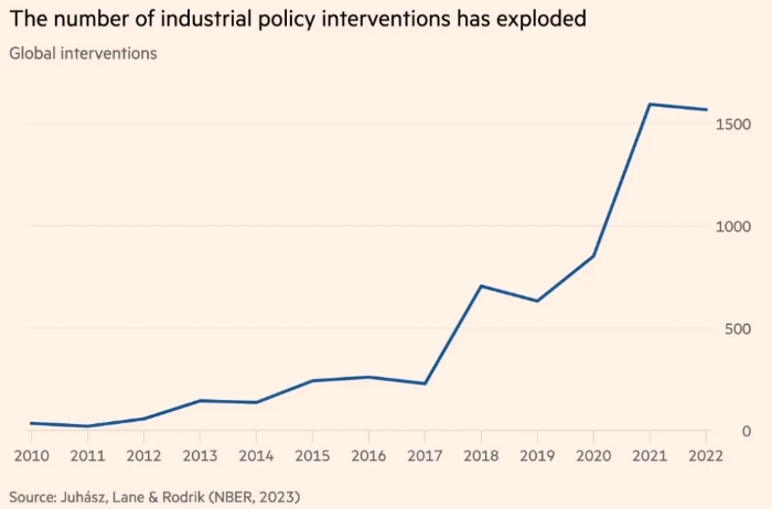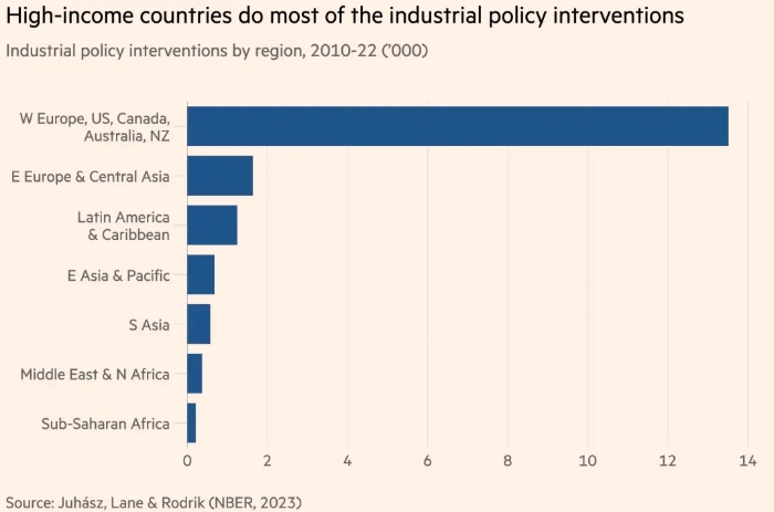 摘要:6月19日,《金融时报》发布首席经济评论员马丁·沃尔夫(MARTIN WOLF)撰写的题为《如何不盲目制定产业政策》的评论文章,批判了特朗普和拜登政府实施的产业政策,表示政客们应该承认,在充满猜疑、保护主义和干涉主义的新时代,可能会损失多少。文章建议,尽管意识形态向民族主义和干预主义的根本转变很难遏制,但是实施产业政策最明智的方式是尽可能精准地针对已发现的问题,同时尽量减少对国际合作、贸易开放和国内经济表现的破坏性副作用。 产业政策再次成为政府干预的强大动力。世界许多地方都是如此。但最引人注目的转变发生在美国。罗纳德·里根宣称: “英语中最可怕的九个字是:我是政府派来的,我来帮忙。”如今,拜登政府正在热情地“提供帮助”。唐纳德·特朗普也是一个干涉主义者,不同之处在于,他的帮助方式是提高关税。鉴于美国历史上作为开放世界经济的倡导者的角色,这种转变意义重大。 有证据表明,产业政策作为一种理念和实践都变得更加普遍。国际货币基金组织去年 1 月发布的《产业政策回归数据》显示,过去十年,商业媒体中对产业政策的提及显著增加。美国国家经济研究局发表的一篇关于《产业政策的新经济学》的论文由雷卡·尤哈斯、内森·莱恩和丹尼·罗德里克共同撰写,论文显示,全球产业政策干预措施急剧增加,从2017年的228项增加到2022年的1568项——主要是在高收入国家(可能是因为它们有更多的财政空间)。这也让世界其他国家指责它们虚伪。(见图1) 图1 产业政策的重要性急剧上升 经济学家认为,这种干预有三个合理理由。第一个理由涉及“外部性”,即企业提供的无偿利益。最明显的外部性来自工人和其他企业从中学到的东西。此外还存在国家安全和其他社会外部性。第二个理由涉及协调和集聚失败:因此,如果多家企业联合起来创业,它们可能会生存下来,但如果单独创业,可能没有一家企业能够生存下去。最后一个理由涉及公共产品的供应,尤其是特定地点的公共产品,如基础设施。请注意,至关重要的是,这些都不是保护的理由。正如我上周指出的那样,保护不是实现这些更广泛的社会目标的糟糕方式。 如果产业政策能够将经济结构朝着有利的方向改变,那么它就是有效的。不幸的是,这种尝试可能会失败,原因众所周知。缺乏信息是其中之一。被一系列特殊利益集团控制是另一个原因。因此,政府可能无法挑选出赢家,而输家却可能成功挑选出政府。摆在桌面上的钱越多,后者就越有可能成真。 图2 实施产业政策依据不同的理由 然而,产业政策是可以奏效的。在2021年彼得森国际经济研究所的一份出版物中,加里·赫夫鲍尔 (Gary Hufbauer) 和 郑惠珍(音译)(Euijin Jung)认为“最突出的成功是美国技术资助机构 DARPA”。因此,成功的创新政策是可能的。基于地点的区域政策有时也奏效。 但失败并不是唯一的风险,成功也是如此。产业政策有可能引发国际报复。韩国利用保护国内市场作为补贴出口的间接方式,从而创造了成功的新产业。但它是一个受美国保护的小国。对于大国来说,必须考虑国际影响。美国和欧盟近期针对中国清洁能源技术的快速发展出台了系列加税制裁和反补贴政策,对经济超级大国之间的关系造成了不利影响。 图3 产业政策影响一系列关键技术和行业部门 如今,最引人注目的新产业政策是拜登政府的产业政策。德克萨斯大学奥斯汀分校的激进经济学家詹姆斯·K·加尔布雷斯在分析中指出,“几十年来,美国首次拥有了一项看似合理的产业政策模拟”。但这不是真的:因此,“美国政府已经失去了在技术和相关科学前沿集中果断努力的能力”。拜登的《通胀削减法案》有多个目标,从促进本地制造到降低排放。这是有问题的。加尔布雷斯希望美国变得更激进地干预。如果美国要干预,就必须更具战略性。真的可以吗? 那么,应该如何评价美国产业政策转变?特朗普右翼势力又希望恢复19世纪末和20世纪初的高关税。 图4 产业政策干预措施数量呈爆炸式攀升 答案是,现在至少有三种两党立场:怀念制造业、对抗中国崛起、对美国自己制定的国际规则漠不关心。这是一个新世界,国际贸易秩序可能很快就会达到临界点。实施产业政策最明智的方式是尽可能精准地针对已发现的问题,同时尽量减少对国际合作、贸易开放和国内经济表现的破坏性副作用。遗憾的是,这种情况不太可能会结束,就像1930年代的情况一样。正如以前经常发生的那样,意识形态向民族主义和干预主义方法的根本转变确实很难遏制。 图5 高收入国家实施了大部分产业干预政策 戴夫·帕特尔、贾斯汀·桑德弗和阿尔文德·苏布拉马尼安在《外交事务》中指出,随着“超全球化”的消亡,新兴国家和发展中国家与高收入经济体之间平均实际收入趋同的时代已经结束。如果怀疑、保护主义和干涉主义的新时代在世界各地肆虐,我们还会失去多少?至少,强大的政策制定者需要尽可能理性和谨慎地做出决定。这关系重大。 本报告来源于国外智库机构研究,仅代表作者观点,不代表中咨智库立场。供研究参考! | |||||
