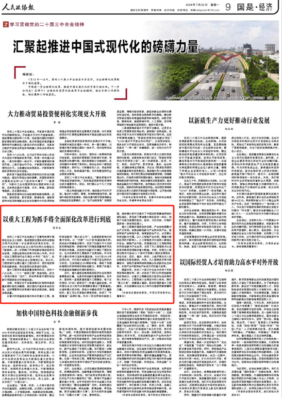 人民政协报:苟护生:以重大工程为抓手将全面深化改革进行到底