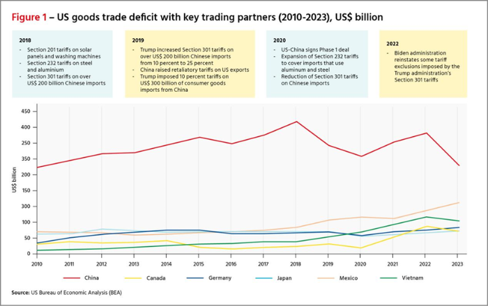 摘要 8月13日,辛里奇基金会贸易政策主管黛博拉·埃尔姆斯发表文章《特朗普如何塑造21世纪美国贸易政策》。文章指出,特朗普第一个任期以贸易为主导,主要是将美国的国家和安全利益置于前沿和中心位置,将贸易作为美国外交和战略政策的武器,但现在已“根植”在华盛顿两党、两院和长期政策制定中。因此,在评估美国贸易和经济政策制定方式的急剧转变时,有五点转变值得注意,其始于特朗普政府时期,并在拜登政府时期延续。 正文 随着即将到来的美国总统选举的民调结果愈发紧张,贸易观察人士正密切关注唐纳德·特朗普总统第一任期的经验教训以及他重返白宫的计划。特朗普代表着与过去美国贸易政策做法的彻底决裂,但他对国内普遍情绪的利用程度足够深,以至于他的许多政策在拜登总统任期内得以延续,而且无论谁入主白宫,他的政策似乎都将继续下去。 贸易和经济是特朗普议程的核心。多年来,他对许多其他议题的立场发生了变化,但他始终专注于贸易。这是他担任总统之前就存在的一个目标。1987年,他在《纽约时报》上刊登了一整页广告,抗议当时他认为不公平的贸易行为,尤其是日本的贸易行为,他认为这种行为削弱了美国。这已经预示了他后来担任总统时将采取的提高关税的举措。 特朗普就任总统后,贸易政策成为“特朗普政策指南针的四个要点”之一。事实证明,这一贸易指南针非常耐用,他和他的团队对美国政策做出的许多改变在他离开白宫后仍然有效。特朗普政府为重新定位美国长期政策制定而采取的立场现在似乎已“根植”在华盛顿的决策中。 在评估美国贸易和经济政策制定方式的急剧转变时,有几点值得注意,这种转变始于特朗普时期,并在拜登时期基本延续。这些包括 1.推动白宫和行政部门的贸易政策; 2.重新使用单边贸易工具; 3.重新制定贸易政策以适应经济战; 4.与经济盟友的关系发生变化; 5.贸易利益与国家安全利益相混淆; 6.全球贸易体系多边规则制定削弱。 特朗普在实施贸易议程方面之所以有效,得益于美国政治制度的特殊性。尽管美国宪法明确赋予国会管理税收(以及关税)的权力,但美国总统和行政部门在贸易和经济问题上仍有很大的回旋余地。自2017年1月,特朗普上任第一天单方面宣布退出跨太平洋伙伴关系协定(TPP)以来,美国贸易政策在很大程度上是由白宫推动的,国会对此没有施加太大压力。 在拜登政府的领导下,贸易政策继续由行政部门制定。拜登和特朗普一样,绕过国会就贸易和经济问题发布了一系列行政命令。他进一步将贸易政策制定权集中在白宫,而美国贸易代表办公室(USTR)的作用则大大受限。美国商务部在印太经济繁荣框架(IPEF)中发挥了核心作用,该框架要求调整美国国内政策流程,以允许美国商务部参与国际谈判。 其次,特朗普选择了里根政府的贸易律师兼高级贸易官员罗伯特·莱特希泽担任美国贸易代表,莱特希泽对美国政治和政策制定体系有着丰富的知识和经验。莱特希泽与彼得·纳瓦罗和威尔伯·罗斯等其他顾问一起制定了许多美国法规和政策,这些法规和政策在很大程度上已经搁置了数年甚至数十年。莱特希泽被任命为美国贸易代表后,得以重启国内工具,例如有关不公平贸易行为的第301条款或有关国家安全的第232条款。 同样,拜登政府继续使用了许多这些具体的工具。对钢铁和铝征收的232条款关税仍然有效,对中国产品的301条款关税也是如此。拜登于2024年7月20日通过公告宣布了新的钢铁232条款申请。2024年8月,还对一组新的中国产品征收了301条款关税。 特朗普最初贸易议程的第三个重要领域是对贸易政策目的的重大重新评估。301条款或232条款等工具被用来实现其目标,其根源在于美国正在经历一场经济战。特朗普的论点被莱特希泽巧妙运用和实施,他认为过去的做法尤其是贸易协定的使用以及他们认为过去政府未能妥善执行这些协定的做法,加速了美国的衰落。 虽然拜登执政期间大部分政策调整都得以实施,但特朗普的一项关键指标被取消了。特朗普将双边贸易逆差的规模视为衡量美国是否从贸易中获益的标准。与美国存在大量商品贸易逆差的国家被认为采用了不恰当的贸易做法。 图1和图2显示,尽管特朗普重新调整贸易政策并重点关注双边贸易逆差,但除非疫情扭曲趋势,否则美国贸易流并没有持续响应特朗普政府的政策。 特朗普对贸易政策的调整包括改变与合作伙伴和盟友的关系。特朗普在与外国政府,包括关键人物打交道时被称为交易型。 特朗普对贸易和经济领域长期存在的联盟和伙伴关系表现出的普遍漠视也意味着,他的大部分努力都是单方面的,而不是通过建立志同道合的合作伙伴联盟来实现的。美国单方面裁定不公平贸易行为的301条款就是一个很好的例子。在特朗普执政之前的几十年里,301条款一直存在,但美国政府并未使用,因为它被多边主义取代,成为应对贸易挑战的更强大、更持久的解决方案。 特朗普和301条款复活的策划者莱特希泽则没有这样的顾虑。301条款被用来作为对中国进口产品分四批提高关税的理由,自2018年3月开始。多种产品的关税最高上涨了25%。 2018年1月,美国对中国商品的平均关税为3.1%。两年内,平均关税跃升至21%,随后在与中国达成第一阶段双边协议后,于2020年3月略微下降至19.3%。在同一时期,中国将对美国进口商品征收