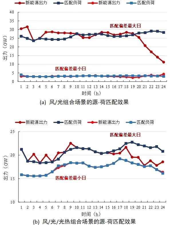 | 计及源-荷匹配的多区域多类型新能源 系统优化规划方法 史昭娣 朱宁 陈琦 摘要:合理利用新能源出力之间的互补性可平抑其出力波动性,在新能源规划中考虑互补性可令新能源规划布局更为合理。基于此,本文考虑新能源出力互补性,研究计及源-荷匹配的新能源优化布局方法.利用新能源总出力与负荷的正相关特性,以保持新能源总出力与负荷的动态平衡。首先,基于源-荷匹配思想,提出了描述新能源出力与负荷贴近程度和正相关程度的均衡度指标以及一致性指标。然后,建立了计及源-荷匹配的多区域新能源优化规划模型,并通过引入新能源出力与负荷匹配均衡度约束来保证两者变化特性相一致。最后,以我国北方地区某区域电网为例进行算例分析,研究结果表明,计及源-荷匹配的新能源优化规划可以综合考虑新能源消纳率和渗透率,为考虑新能源出力互补性的新能源规划布局提供解决方案。 关键词:新能源;互补性;电源规划;源荷匹配;光热电站;容量配置 一、引言 随着能源转型进程加快,我国大力发展风电[1]、光伏[2]等新能源发电技术,未来电力系统将朝着大规模、高比例新能源电力系统方向发展[3]。新能源出力自身之间具有互补性,利用新能源总出力与系统总负荷之间的匹配效应可以凸显新能源出力间的互补效果,平抑新能源出力波动性,减小常规机组调峰压力[4]。 风电、光伏的出力功率波动性强[5-6],大规模接入后会对系统造成冲击,对电网调峰带来挑战[7-8]。实际上,风电和光伏出力具有互补特性[9],其主要表现在两方面:一是新能源资源的广域平滑效应。二是风光出力具有时间上的互补性。 充分挖掘新能源出力互补特性是开展新能源协调规划的重要基础。已有学者对此进行研究,如文献[10]分析了各类能源的互补效应,讨论了配置不同容量电源的经济性和可行性。文献[11]分析了风、光、水资源之间的互补特性,提出了一种包含风、光、水、储的互补性微电网容量优化配置方法。文献[12]研究了新能源出力互补优化方法,定量计算了各类资源容量。上述文献关于系统电源出力互补性进行了研究,但对于新能源出力互补性的分析多是与常规电源一起考虑,未有研究仅考虑新能源出力自身互补性。 研究新能源出力自身互补特征,通常需要提出互补性评价指标[13]。如文献[14]采用新能源总出力的标准差作为评价指标来刻画新能源出力互补性。文献[15]定义了由时间互补、能量互补和振幅互补组成的可再生能源互补性指标。文献[16]采用互补系数等指标描述多能互补系统中电源出力的互补性。以上关于新能源互补性的研究多注重新能源出力之间的负相关性,即假定新能源场站的总出力恒定不变,则认为新能源互补效果最好。 由于负荷具有波动性,上述基于负相关性的研究中,负荷波动部分会由常规可控电源负担。但如果新能源总出力与负荷波动规律保持一致,即新能源出力与负荷之间存在匹配效应,那么新能源发电就可承担一部分变化的负荷,火电机组更多承担基荷并运行在较低的水平,从而大幅降低新能源接入系统带来的常规电源调峰压力。因此,从提高新能源消纳方面看,新能源出力与负荷之间的匹配(源-荷匹配)关系才更可凸显新能源互补的效果[17],此时互补性表现为新能源总出力与负荷呈正相关性。 针对源-荷匹配效果的描述,已有学者进行了研究。如文献[18]定义了负荷追踪度指标用以评价不同电源互补效果。文献[19]采用负荷追踪系数描述系统出力跟随负荷变化的能力,并用其量化多能互补系统总发电量与负荷的匹配程度。文献[20]以新能源出力与负荷之差的平方和最小为目标,提出了新能源出力追踪控制算法。上述利用负荷追踪能力来描述系统源-荷匹配效果的评价方法主要是用于新能源电力系统优化调度中,本文借鉴这种方法,将其应用于新能源电源优化规划中,可在规划阶段充分计及多类型新能源出力间的互补特性。 基于以上分析,本文针对计及源-荷匹配的广域多区域新能源电源优化布局问题进行研究。首先,为了量化新能源出力与负荷之间有功功率的匹配能力,从均衡度和一致性两方面评价源-荷匹配特性。其次,基于源-荷匹配思想,建立了多区域新能源优化规划模型。模型以电网新能源发电量最大和源-荷匹配偏差最小为目标函数,并采用带权极小模理想点法[21]统一两个目标函数的量纲,综合考虑新能源发电功率约束、新能源限电率约束、新能源装机容量约束等,通过引入所提源-荷匹配均衡度约束来保证新能源出力与系统负荷需求变化特性一致。然后,以各区域新能源全年出力时间序列和负荷序列为模型输入,对规划模型进行优化求解,得到各区域最优新能源接入容量,并利用一致性指标来评价源-荷匹配效果。最后,以我国北方某区域电网为例进行算例分析,算例结果验证了由源-荷匹配定义新能源出力互补性的合理性,研究内容可为广域新能源多区域布局规划提供参考意见。