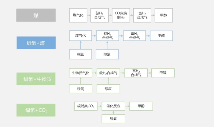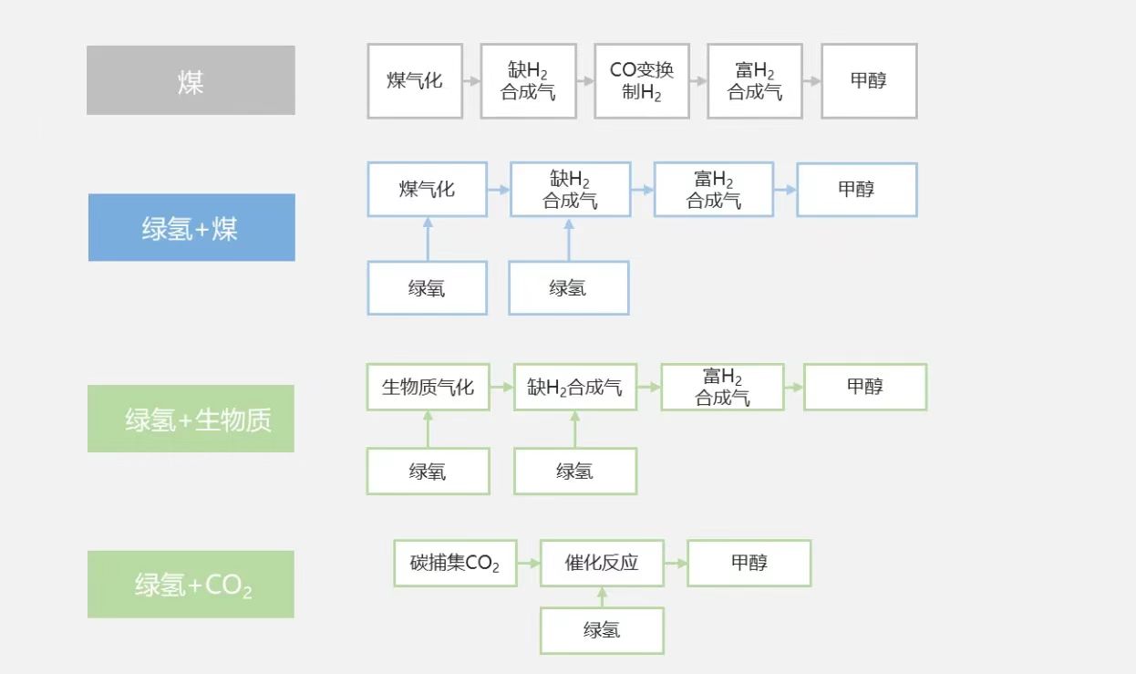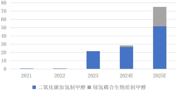 | 我国氢基能源产业发展现状及趋势 田泽普 王凡 孟云龙 摘要:氢基能源是以氢气为核心构建的能源体系,包括可再生能源制取绿氢、绿色甲醇、绿氨等,具有清洁零碳、灵活高效、来源丰富的特点,对于推动全球能源转型和减少温室气体排放具有重要意义。该文围绕中国氢基能源产业链的发展现状及趋势进行了阐述,分析了电解水制氢、绿色甲醇、绿色合成氨3种氢基能源发展的政策与市场背景,梳理了当前我国氢基能源产业发展的规模、技术现状,研判氢基能源发展阶段与未来趋势,为氢基能源产业的发展提供借鉴和参考。 关键词:氢基能源;绿氢;绿氨;绿色甲醇;规模;技术 氢因其具有的能源、原料、介质三重属性,构成了包括氢、甲醇、合成氨等的各类氢基能源。在全球产业低碳、绿色发展的大背景下,氢基能源成为了多个行业绿色转型的重要载体。当前,政策指引、技术进步、需求拉动三点成为影响中国氢基能源整体产业发展的重要驱动力。绿色氢气供应、绿醇需求、绿氨需求这“一生产二应用”的几个维度,在短期内将构成氢基能源的重要支撑。分析其发展阶段和前景可“一叶知秋”,带来更多对氢基能源发展的思考。 一、电解水制氢:为规模应用奠定基础 (一)政策:鼓励类政策将破除绿色生产障碍 2023年国内部分城市和地区提出了诸多先行先试的政策,支持绿氢产业发展。 一是破除优化绿氢生产和使用的限制政策。2023年6月发布的《河北省氢能产业安全管理办法》明确提出“化工企业的氢能生产,应取得危险化学品安全生产许可[1];绿氢生产不需取得危险化学品安全生产许可”。这是国内首个对可再生能源制氢在危化品许可方面进行放松的政策。该文件中也提到了“允许在化工园区外建设电解水制氢(太阳能、风能等可再生能源)等绿氢生产项目和制氢加氢一体站。”2023年,广东省、辽宁大连、安徽六安、新疆阿勒泰地区布尔津县等地的氢能相关政策均提出“允许在非化工园区建设制氢加氢一体站”[2]。 二是提供支持绿氢生产的补贴。2023年,多地市针对绿氢生产项目提出补贴政策,以绿氢销售量直接补贴等的方式为主。如内蒙古鄂尔多斯、新疆克拉玛依提出对当地氢气产能大于5000吨/年的风光制氢一体化项目主体,按实际售氢量进行1500~4000元/吨的退坡补贴[3];广东深圳则采取对电解水制氢加氢一体站进行电费减免等补贴措施。 (二)规模:中国电解水制氢产能及电解槽需求量翻倍增长 2023年电解水制氢新增产能(建成项目)约3.7万吨/年,同比增长约181%;截至2023年底,累计产能达约7.2万吨/年。绿氢项目产能的持续建设,推动2023年中国电解槽年需求量(在建项目)进一步扩张。2023年,中国制氢电解槽需求量约1.42GW(不含出口量),同比增长约128%。2021-2025年中国绿氢产能变化情况详见图1。 来源:中咨氢能中心,能景研究 注:2021-2023年的产能为统计值,2024、2025年产能为积极情境下的预测。 图1 2021-2025年中国绿氢产能变化 到2023年底,中国电解水制氢产能约63%集中在西北地区新疆、宁夏两省;同时约80%采用光伏制氢,主要受中石化库车光伏制氢等示范项目带动。电解水制氢项目产能的落地受各地区可再生能源丰富水平、技术成熟度、减碳需求、消纳潜力等因素影响。 短期来看,三北地区将成为中国电解水制氢产能主要聚集地,风电制氢或风光一体化制氢占比将逐渐升高。新疆、宁夏、内蒙古等地是光伏资源或风能资源最丰富地区,光伏及风电可利用小时数高,对氢气综合成本的快速下降具有重要作用;此外,这些地方分布有油气加工、甲醇生产等一系列用氢装置,可对绿氢的大规模工业应用进行技术验证并对绿氢实现有效消纳。 长期来看,东部沿海或将成为中国绿氢产能主要来源之一,而风电制氢为东部主要模式。东部沿海各省陆上及海上风电技术可开发量超过4000GW[4-5],占东部可再生能源可开发量7成左右;在全国炼化、甲醇等用氢场景集中,东部地区的氢气需求占总量50%以上;东部沿海港口众多,其对外的氢基能源贸易也将率先起步。 (三)技术:产业链不断完善,相关指标提升 当前中国与绿氢定义相关的强制性标准等尚未出台[6],大型绿氢项目仍以并网、半离网等为主。现阶段市场对电解槽主要更看重制氢能耗等经济性、示范性的指标。 2023年中国碱性电解槽进入技术迭代阶段。零部件性能进展方面,部分国产化新型合金催化剂、复合隔膜开始在国内电解槽厂家试用。结合部分厂家研发进展,国产催化剂或隔膜等或可实现批量供应,1至2年内在性能上迭代更新至国际前沿水平。国内主流的中压柱形碱性电解槽结构进展方面,单槽制氢量继续增大,2023年有约10款2000Nm3/h单槽制氢量电解槽推出,且推出3000Nm3/h电解槽。低压方形碱性电解槽路线进展方面,2023年中国推出了至少三款低压方形碱性电解槽,其中单槽制氢量最高达到3000Nm3/h。 国内碱性电解槽的性能指标不断突破。一是额定制氢电耗降低,电流密度升高。制氢电耗、两者主要与制氢催化剂活性、隔膜电阻等因素有关。2023年,主要厂家产品的额定制氢电耗平均约为4.3k·Wh/Nm3H2,电流密度约3200A/m2@1.8V。结合技术发展,预测到2025年,中国碱性电解槽制氢平均电耗有望降至4.1k·Wh/Nm3H2,同时电流密度升至4000A/m2@1.8V。二是负荷调节范围更宽。电解槽功率负载功率范围主要受隔膜零部件、电解槽结构、工程系统设